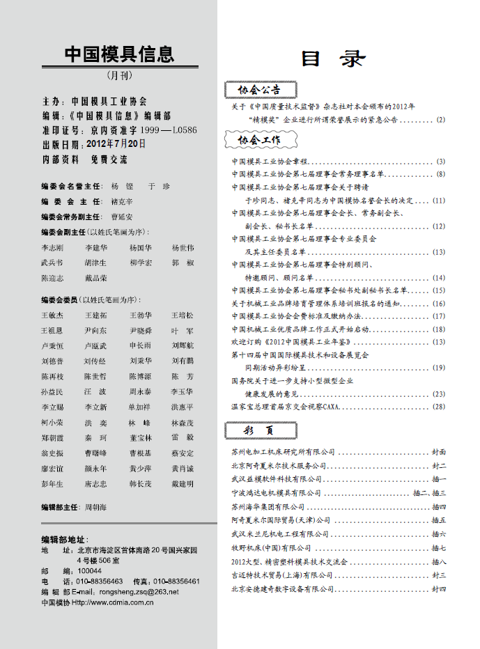 模具行業“十四五”發展綱要? ?100元/本? ? ?聯系電話:010-88356463