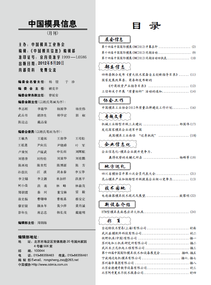中國模具信息2012年第五期目錄