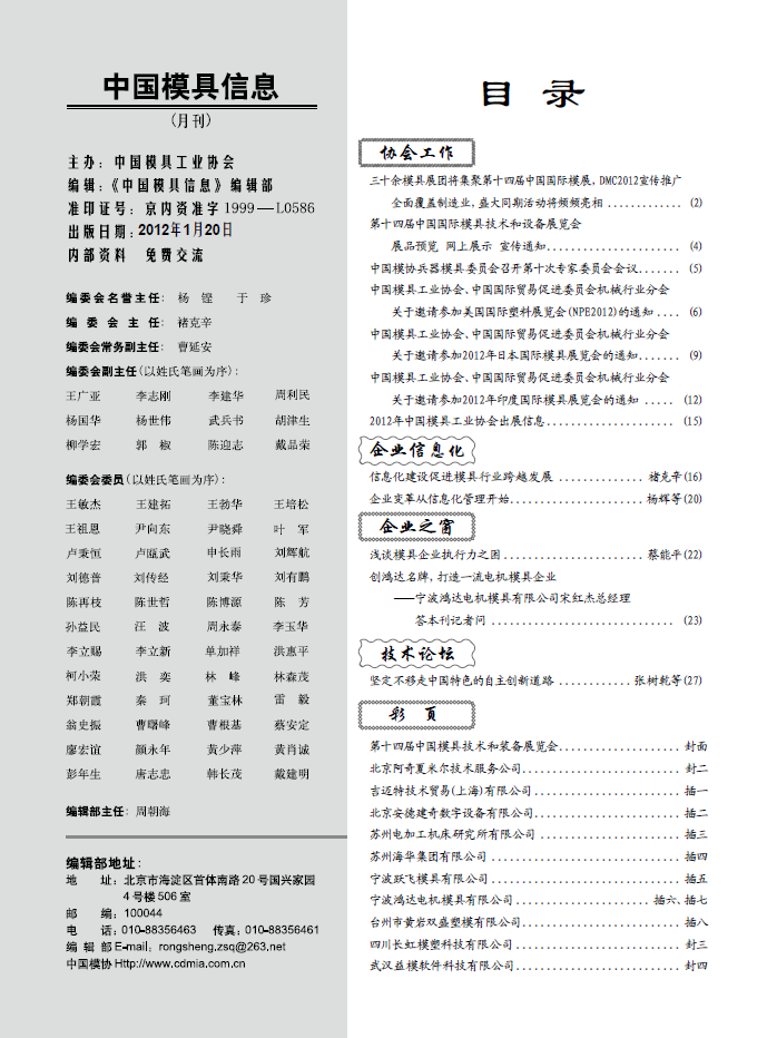 中國模具信息2012年第一期目錄