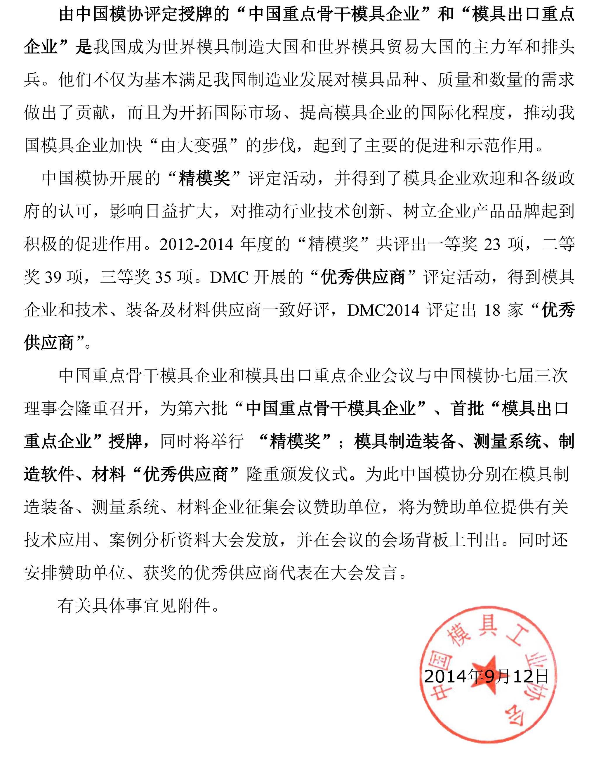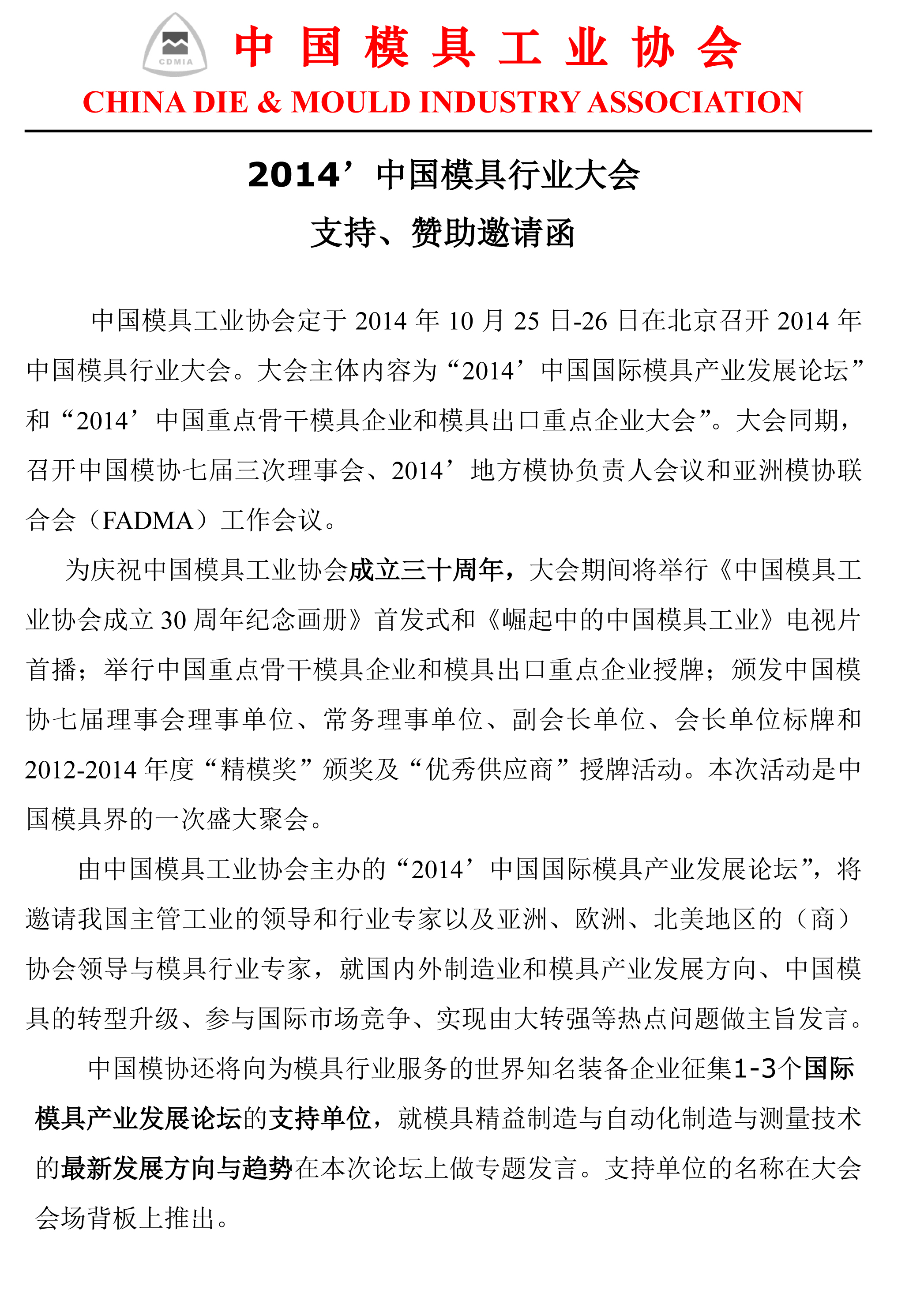 2014’中國模具行業(yè)大會支持、贊助邀請函