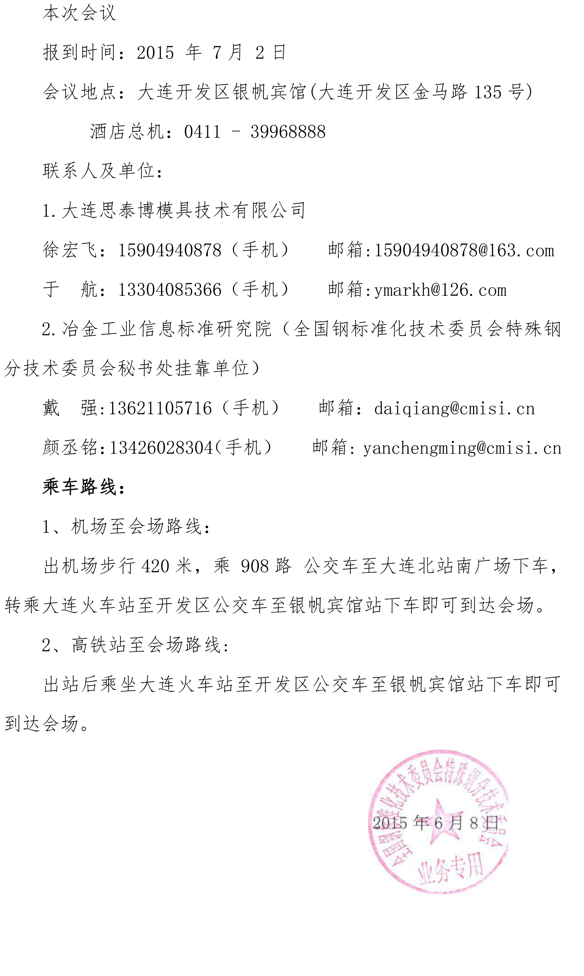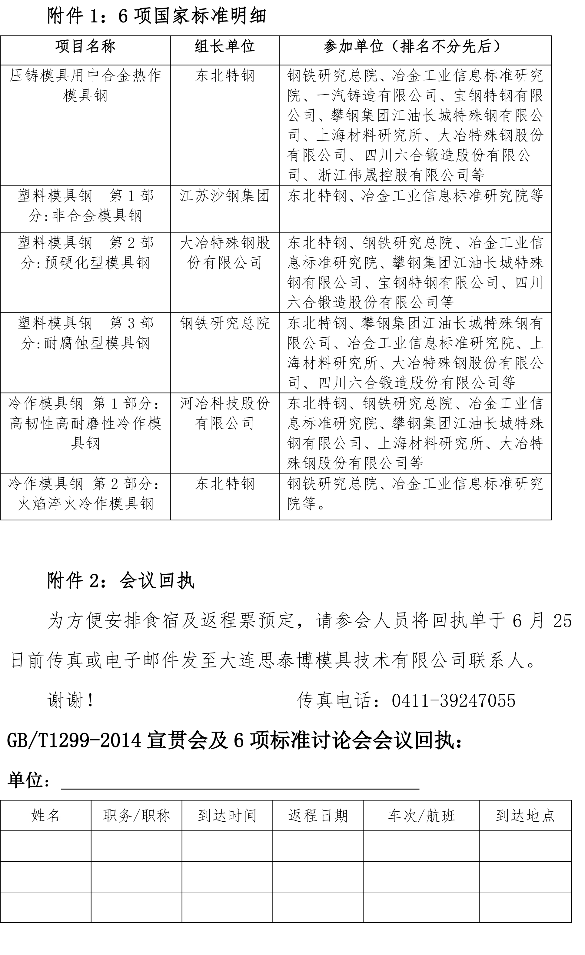 關于召開GB/T1299-2014《工模具鋼》國家標準宣貫會及《壓鑄模具用中合金熱作模具鋼》等6項國家標準討論會的通知