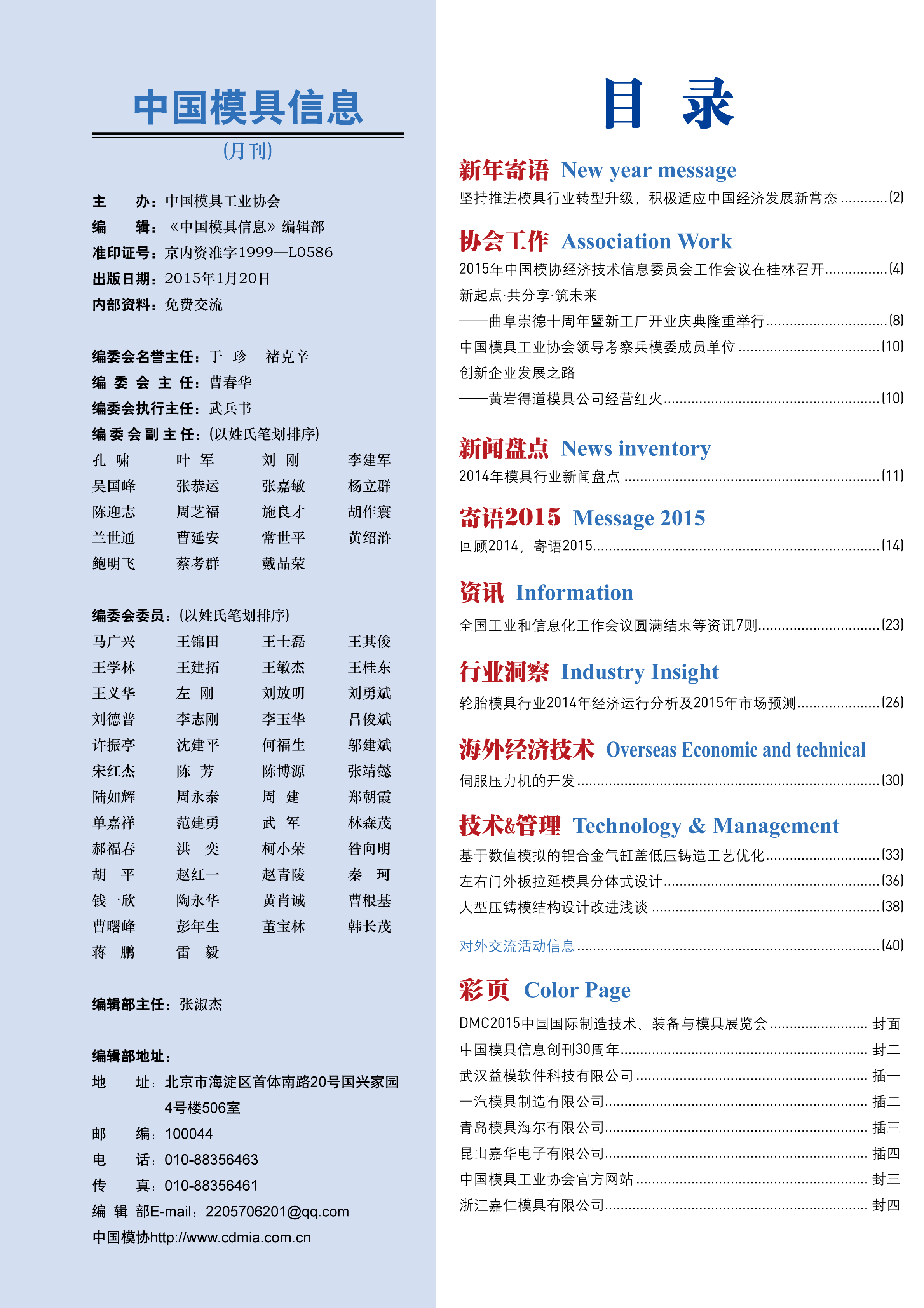 中國模具信息2015年第一期目錄