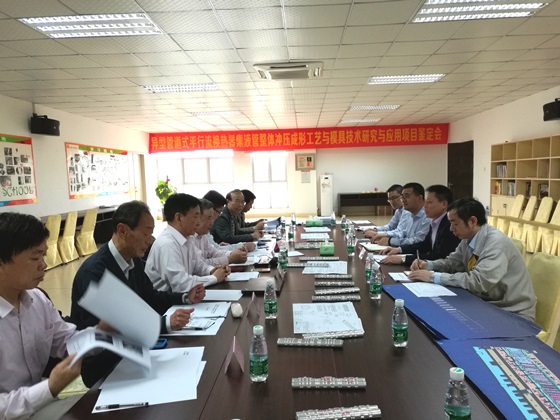|      2016年4月1日,中國機械工業聯合會在廣東省東莞市組織召開了由祥鑫科技股份有限公司和華南理工大學共同完成的 “管道式換熱器集液管整體級進沖壓成形與模具技術研究與應用”科技成果鑒定會。由國內模具行業資深專家組成的鑒定委員會聽取了項目組的研制工作匯報、審查了相關鑒定資料、實地考察了生產現場、經過質詢和討論,對該科技成果形成了鑒定意見,同意通過鑒定。