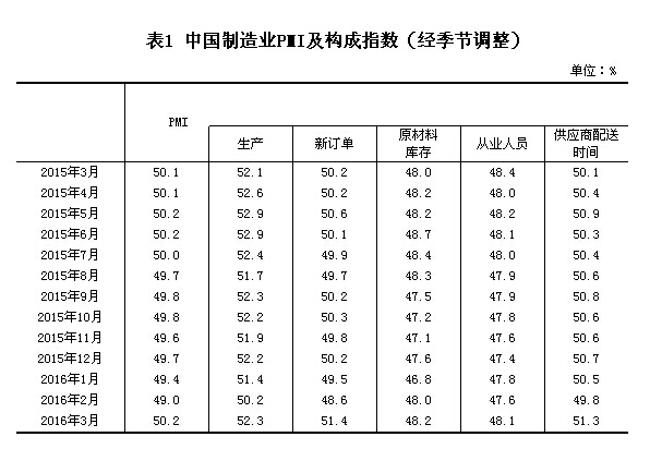 中國經(jīng)濟網(wǎng)北京4月1日訊 今天,國家統(tǒng)計局發(fā)布3月份制造業(yè)數(shù)據(jù),數(shù)據(jù)顯示,3月中國制造業(yè)采購經(jīng)理指數(shù)(PMI)為50.2%,比上月上升1.2個百分點,重回擴張區(qū)間。