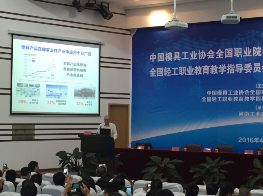 4月16日上午年會大會在河南工業職業技術學院報告廳召開,聯席會議主任委員戴裕崴院長致辭,中國輕工聯合會培訓中心副主任、輕工職業模具專業指導委員會的孟琪副主任就模具行業職業教育對輕工產業的發展做了精彩發言,中國模協秦珂常務副秘書長對中國模具行業十三五發展思路作重要解讀,她從我國現代模具工業的現狀與基礎、模具行業新業態、我國模具十三五發展剛要、模具“由大變強”須積極建立大制造的發展思路、模具人才未來培養方向以及DMC中國國際模展對行業技術進步、提振行業影響力等方面進行了報告。