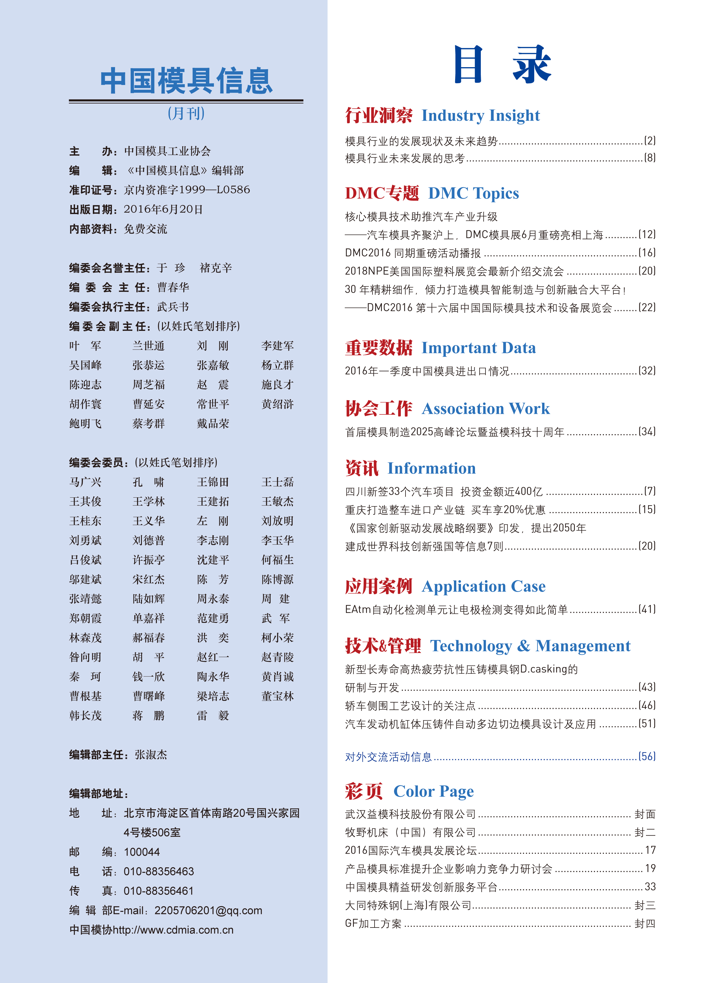 中國模具信息2016年第六期目錄