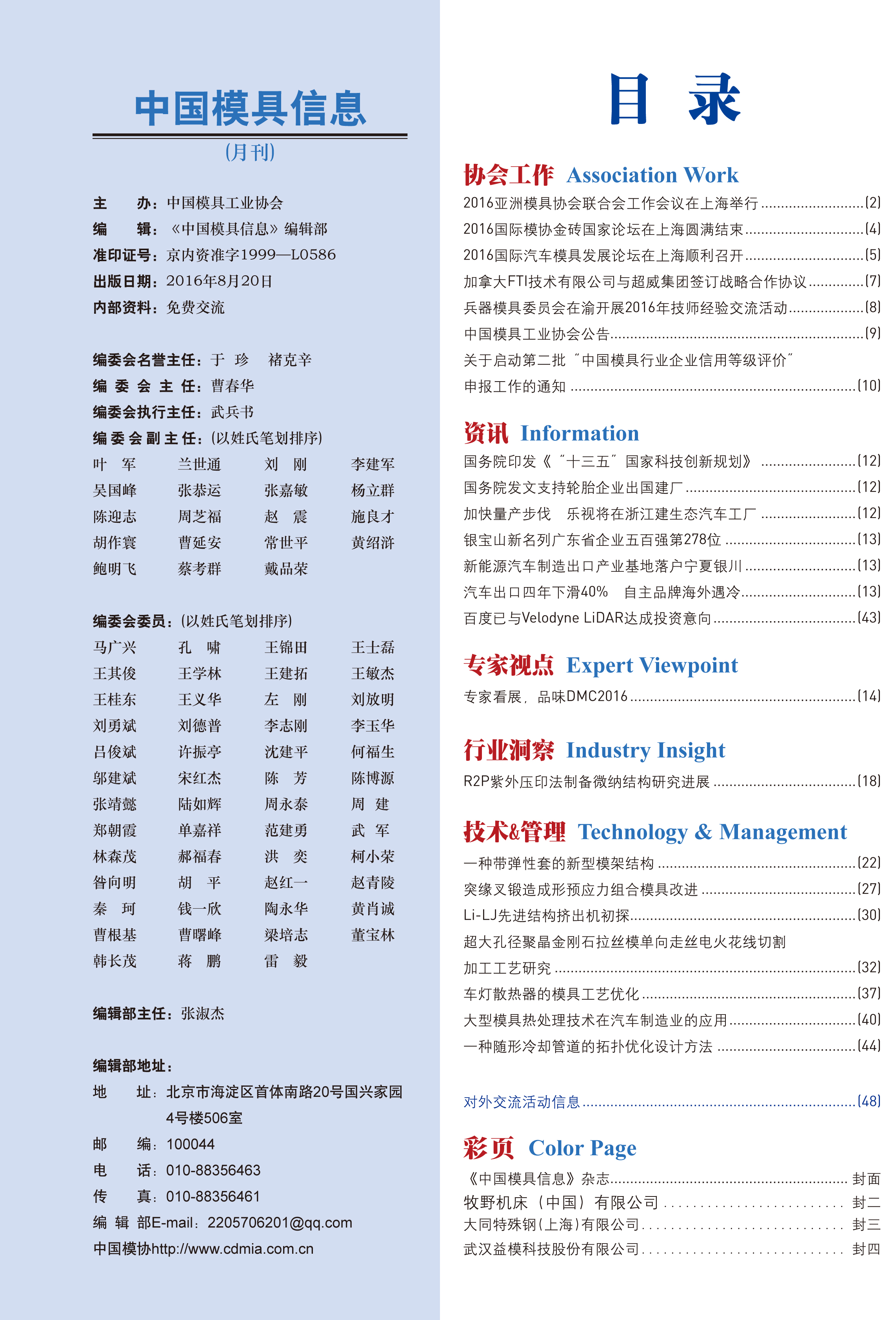 中國模具信息2016年第八期目錄