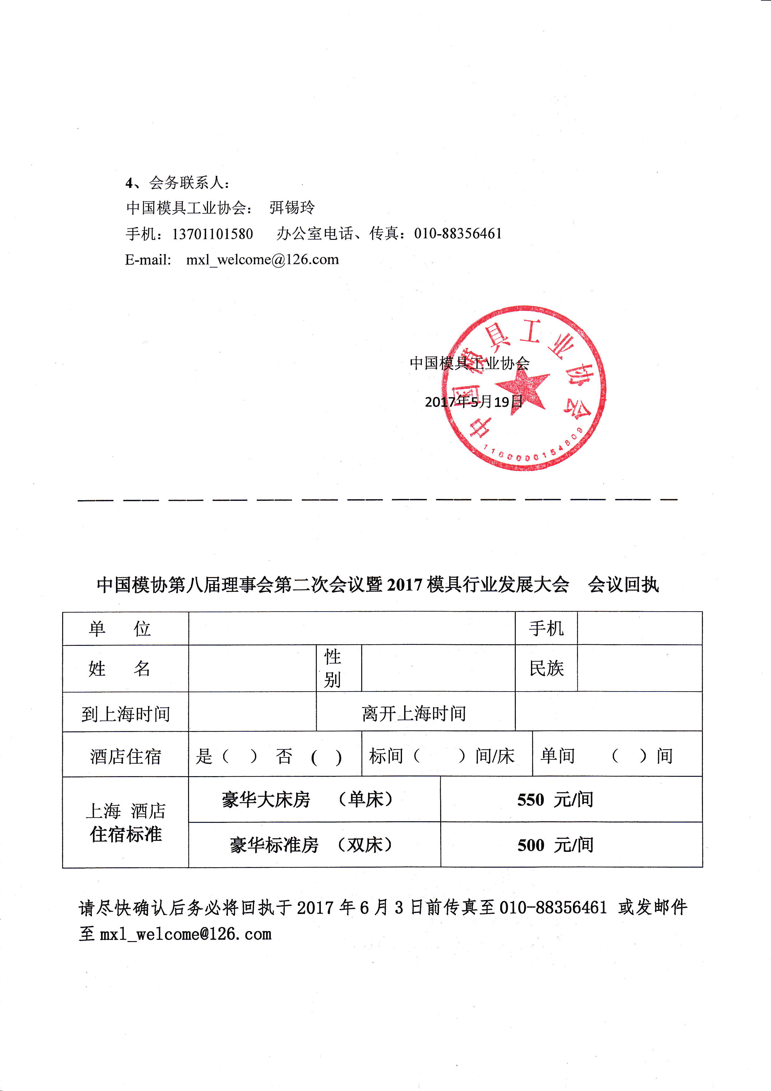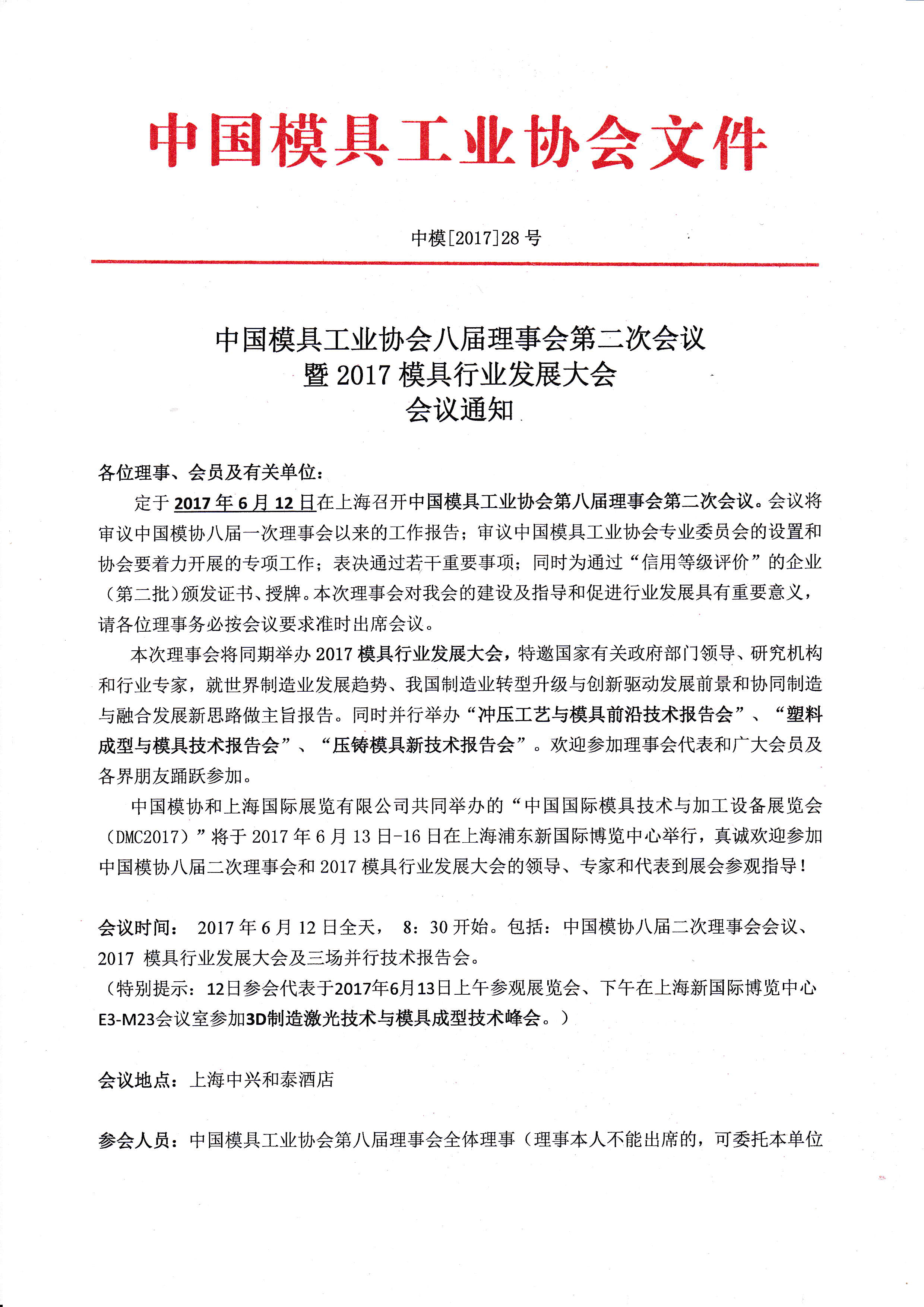 中國(guó)模具工業(yè)協(xié)會(huì)八屆理事會(huì)第二次會(huì)議暨2017模具行業(yè)發(fā)展大會(huì)會(huì)議通知