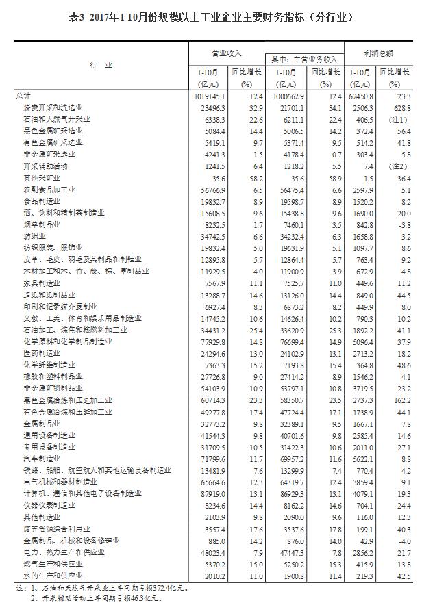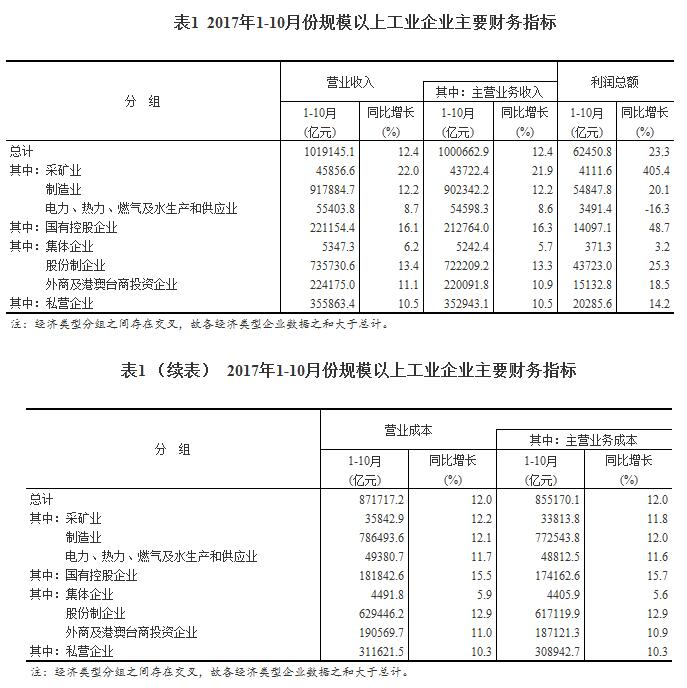 1-10月份,全國規(guī)模以上工業(yè)企業(yè)實現利潤總額62450.8億元,同比增長23.3%,增速比1-9月份加快0.5個百分點。