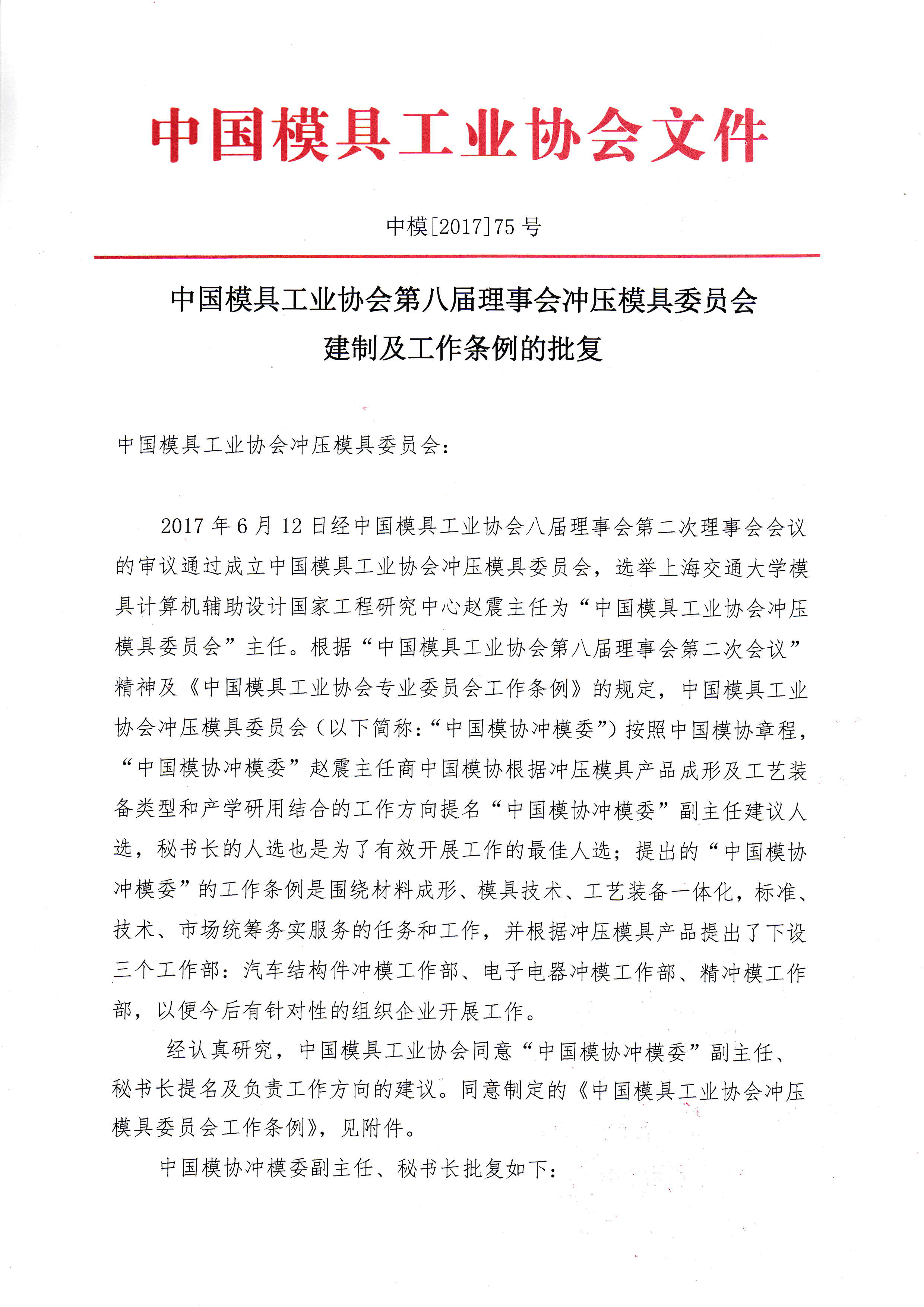 沖壓模具委員會建制及工作條例的批復(fù)