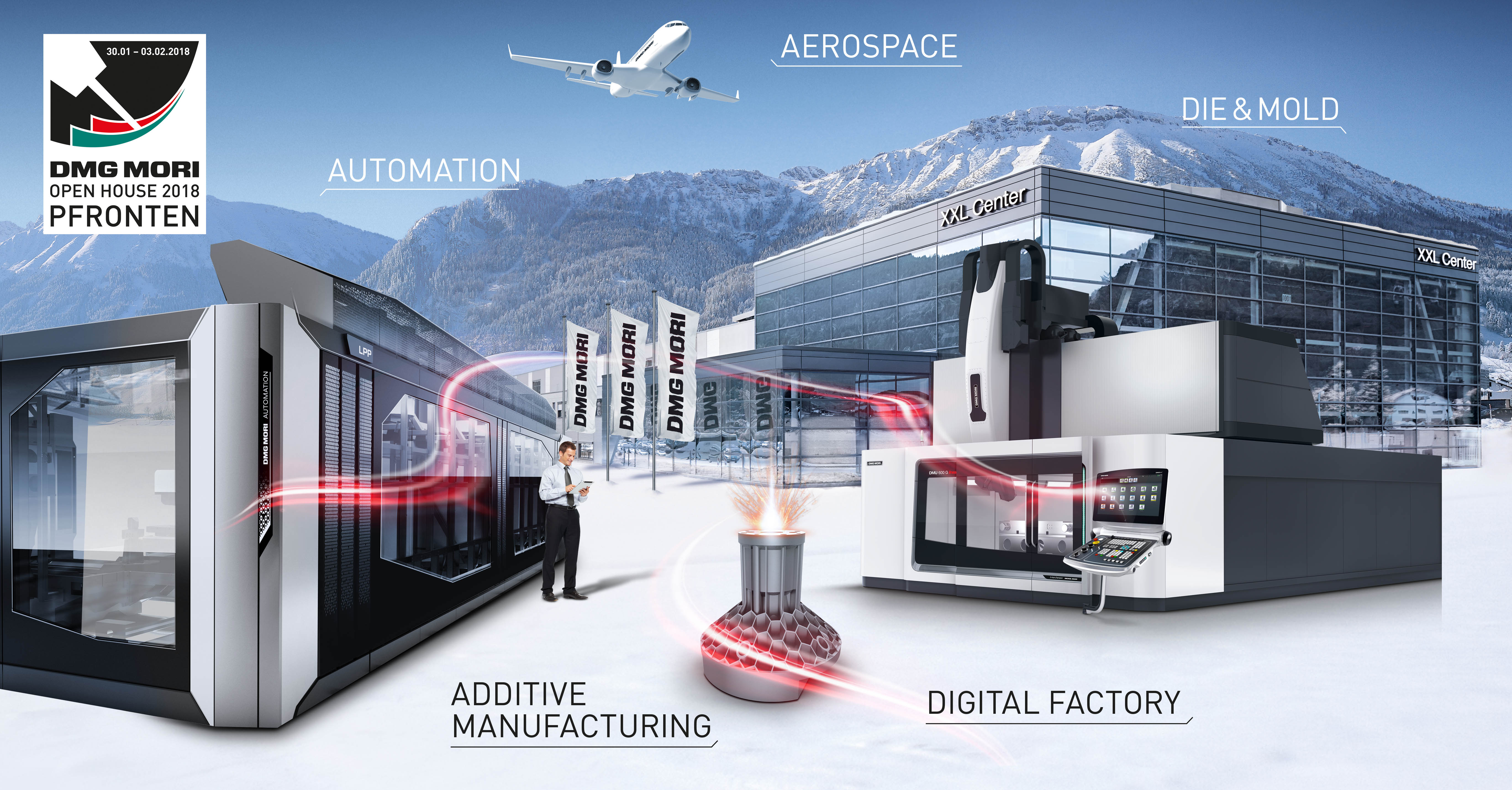 2018年1月30日至2月3日,DMG MORI將在德克爾馬豪弗朗頓舉辦傳統開放參觀日活動,屆時將展現全面的生產技術。展出面積超過8500m²,展出的高科技機床多達70余臺,全新NTX 3000將進行全球首秀,還將展示創新的生產技術,例如:增材制造的三大完整工藝鏈。DMG MORI認證產品(DMQP)為客戶的生產制造提供協調匹配的機床輔助設備和配件以及全新VCS標準版技術循環,該技術循環提供空間補償和自動校準能力。