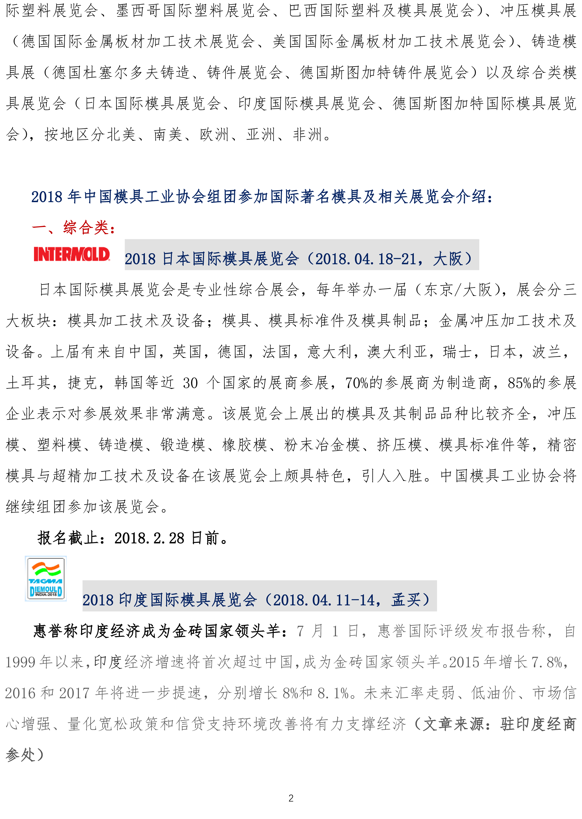 2018年中國(guó)模具工業(yè)協(xié)會(huì)組團(tuán)參加國(guó)際著名模具及相關(guān)展覽會(huì)介紹