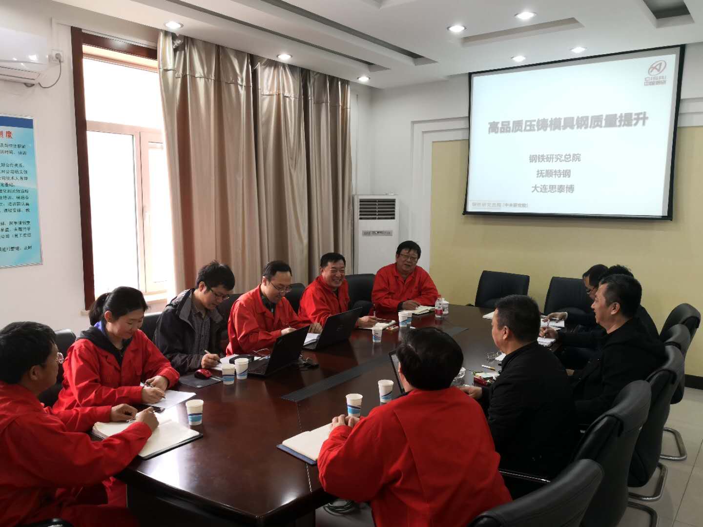 2018年4月23日,由撫順特殊鋼股份有限公司主導的“高熱強性熱鍛模具鋼的開發(fā)”項目在撫順特鋼啟動。該項目由鋼鐵研究總院、撫順特殊鋼股份有限公司(以下簡稱“撫順特鋼”)、大連思泰博模具技術有限公司(以下簡稱“大連思泰博”)聯(lián)合攻關。鋼鐵研究總院馬黨參、周健,撫順特鋼唐國梁、王琳、康愛軍、劉寶石,大連思泰博金宇峰、徐宏飛、梅建蒙出席了本次會議。本項目的目標是突破特大型壓鑄模塊(FS438、GYDCK-S)的高潔凈、無偏析、組織均勻化的高性能長壽命穩(wěn)定化生產(chǎn)關鍵技術。同時,借助大連思泰博已建成的高端模具真空熱處理、表面處理裝備,突破高端壓鑄模具微變形、無氧化、長壽命的先進熱處理技術。通過三方的強強聯(lián)合,優(yōu)勢互補,形成高端壓鑄模具新材料研發(fā)、生產(chǎn)、模具設計制造、大型復雜模具的熱處理集成創(chuàng)新鏈,更好的為客戶服務,促進中國壓鑄行業(yè)的發(fā)展。