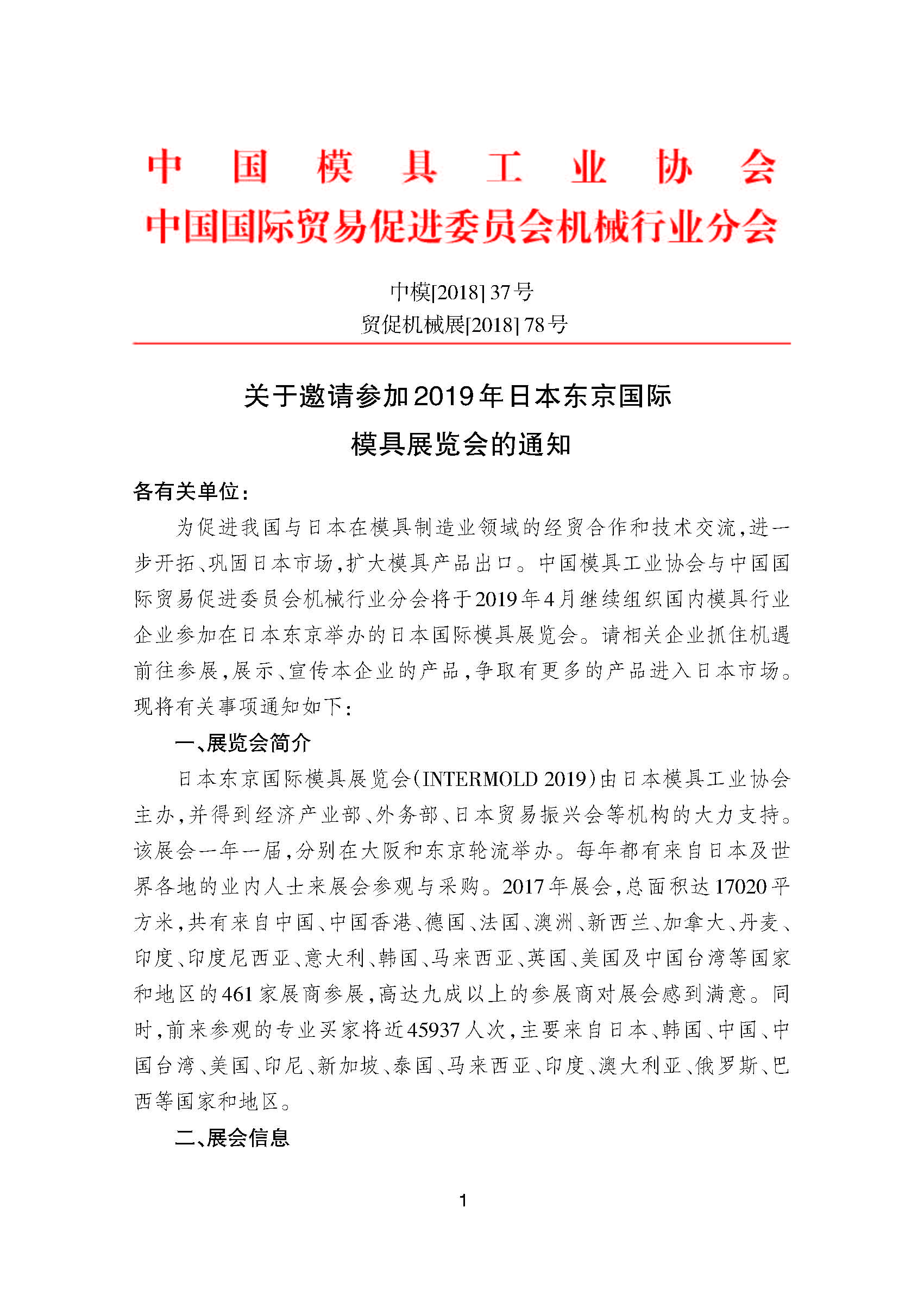 關于邀請參加2019 年日本東京國際模具展覽會的通知