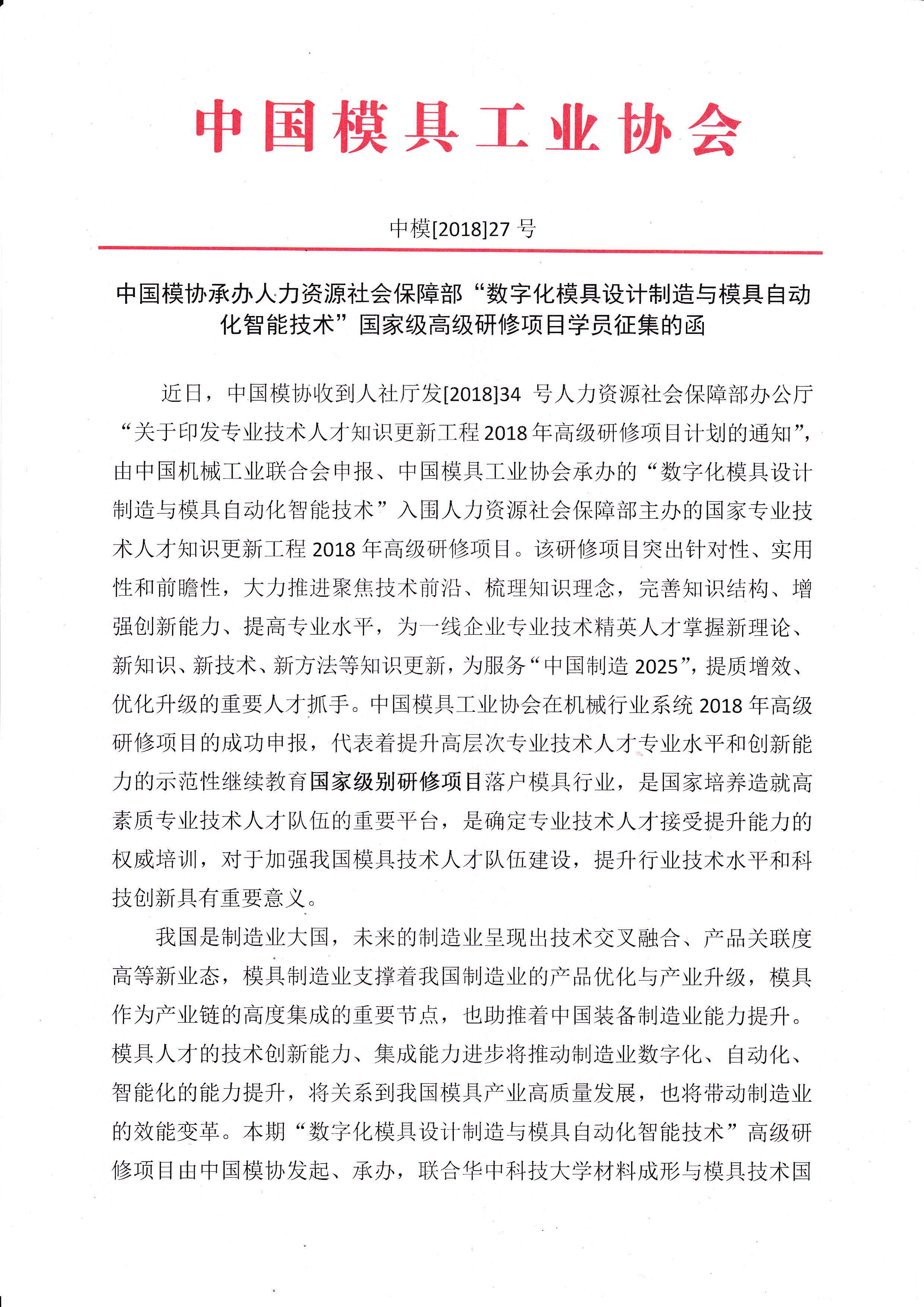 中國模協(xié)承辦人力資源社會保障部高級研修項目學員征集函