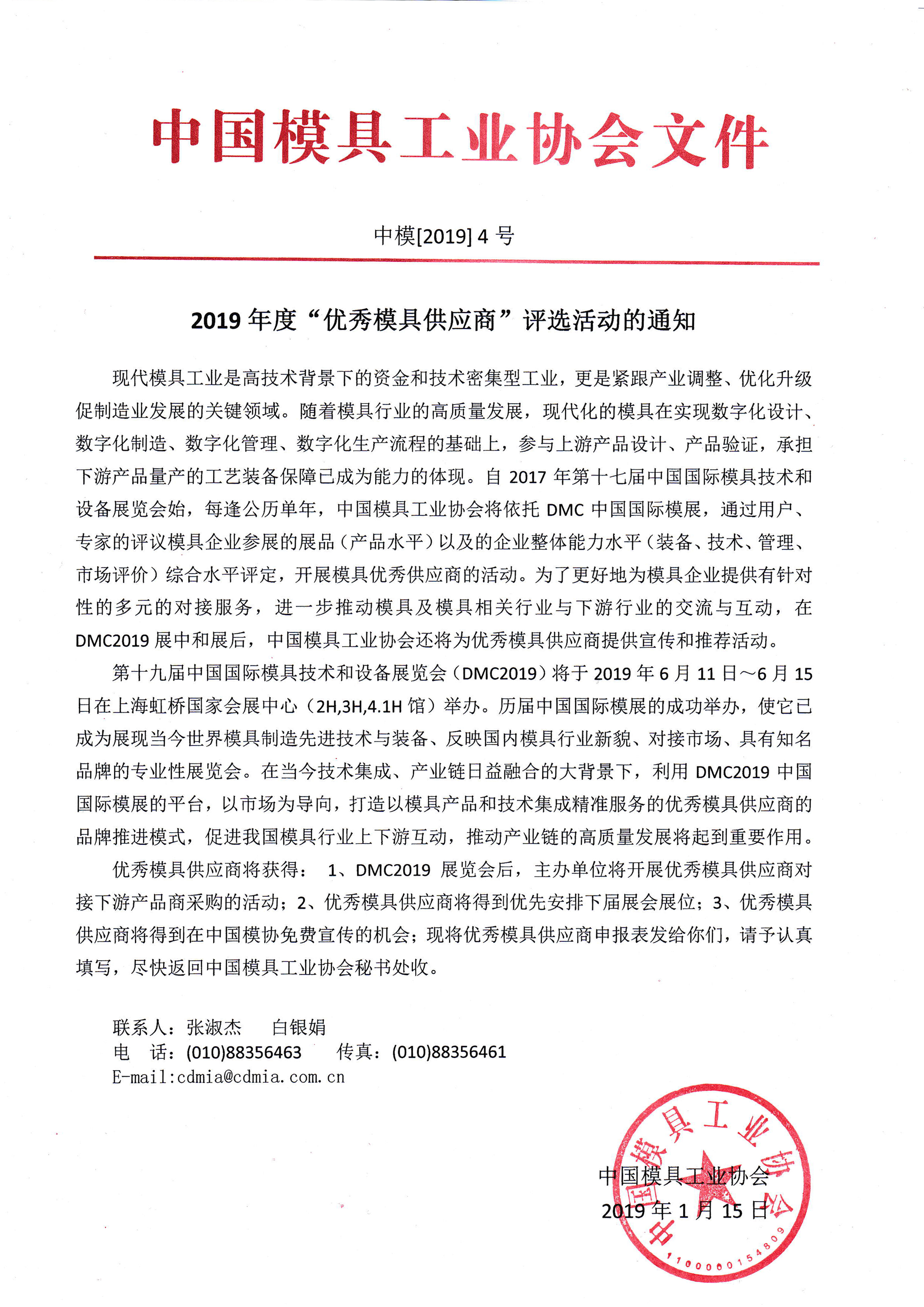 2019年度“優秀模具供應商”評選活動的通知