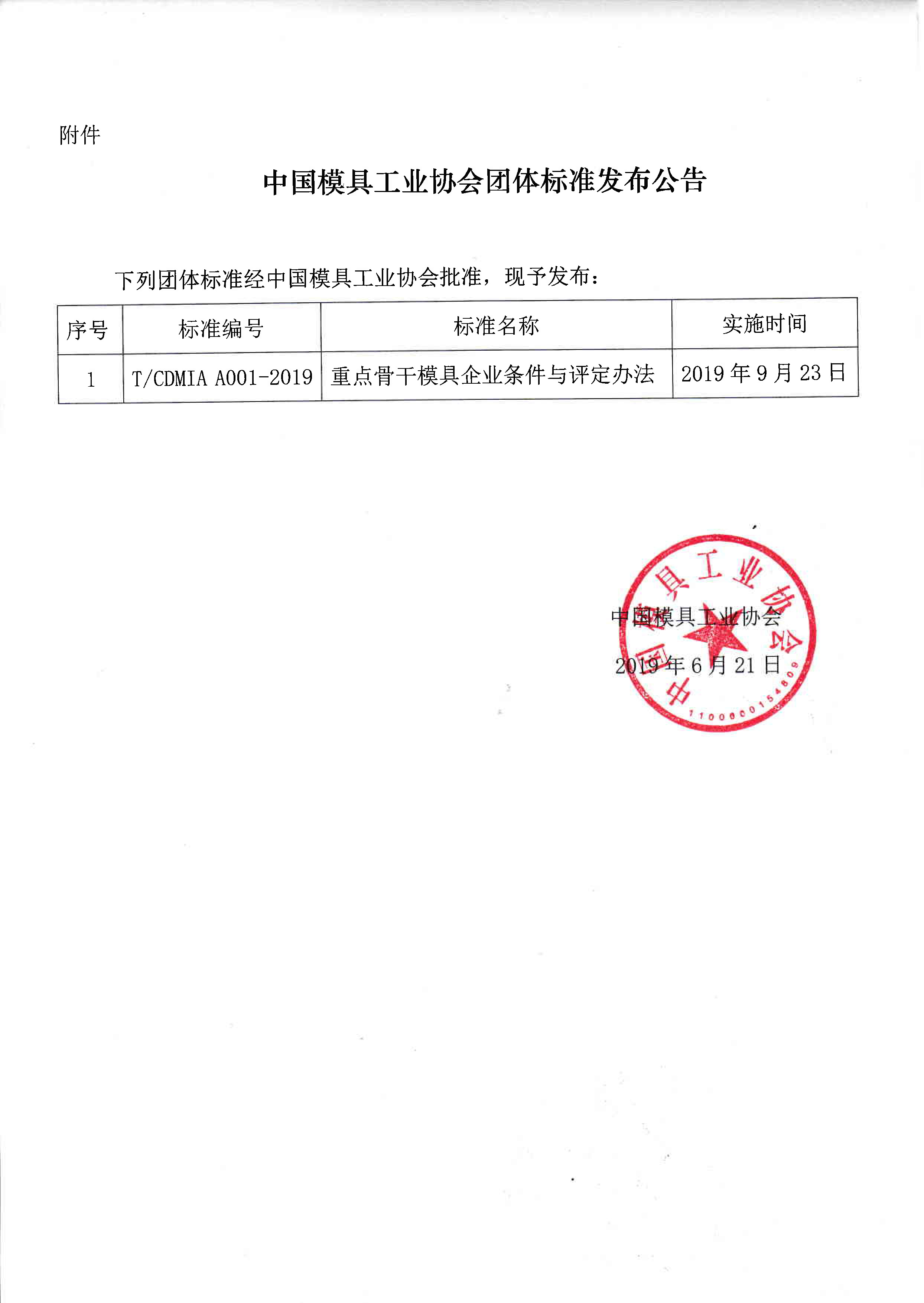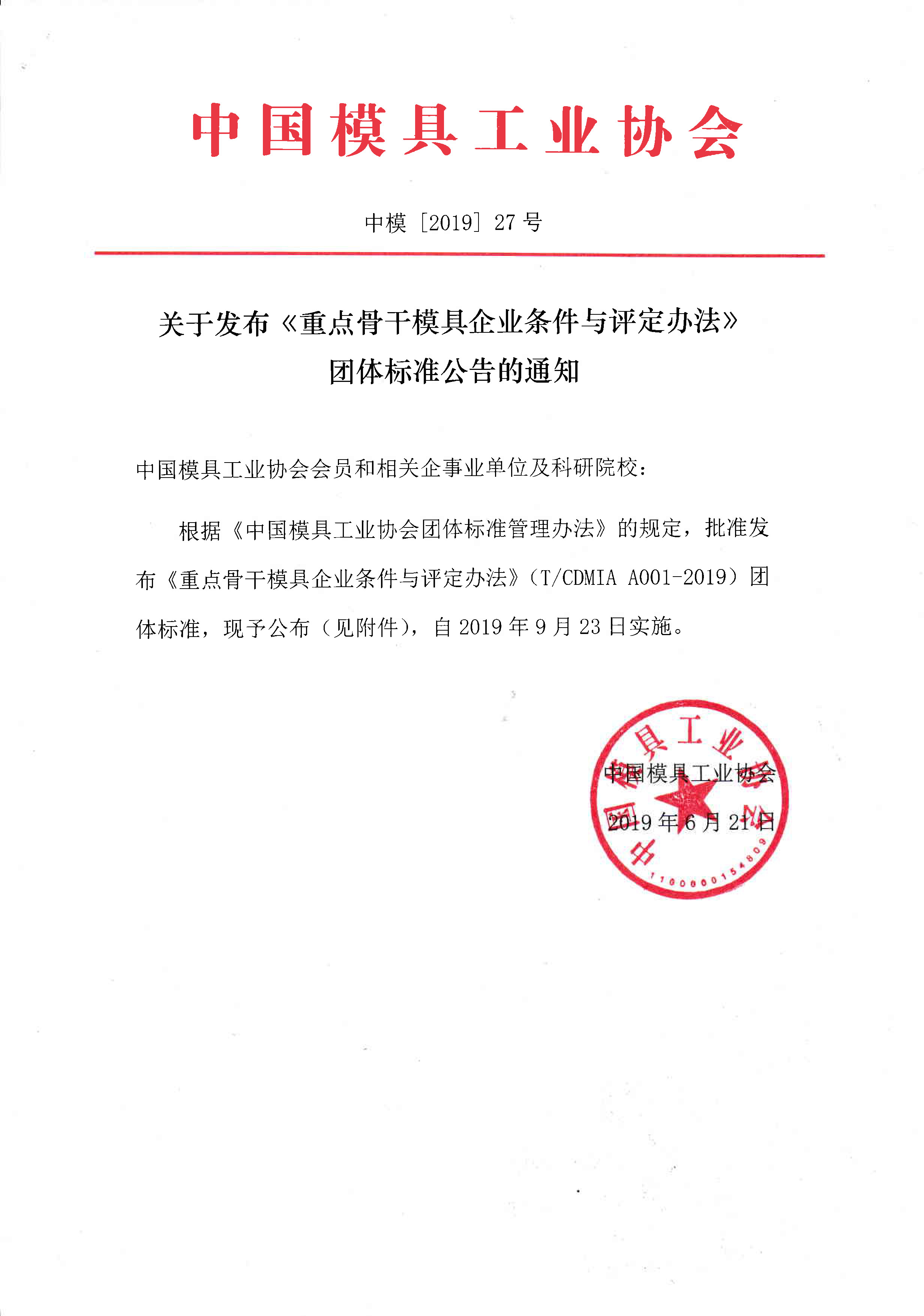 關(guān)于發(fā)布《重點骨干模具企業(yè)條件與評定辦法》團(tuán)體標(biāo)準(zhǔn)公告的通知