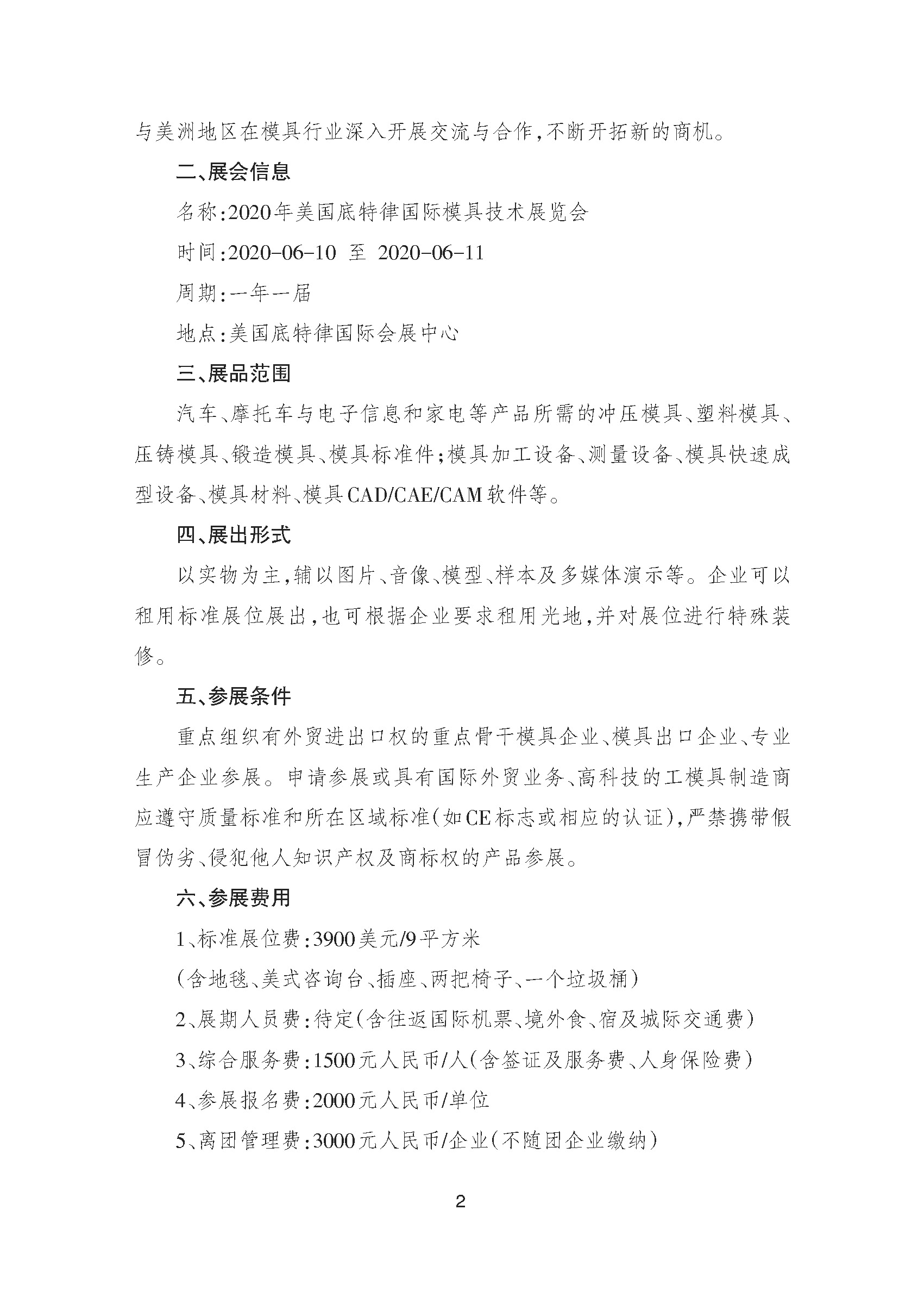 關(guān)于邀請參加2020年美國底特律國際模具技術(shù)展覽會的通知