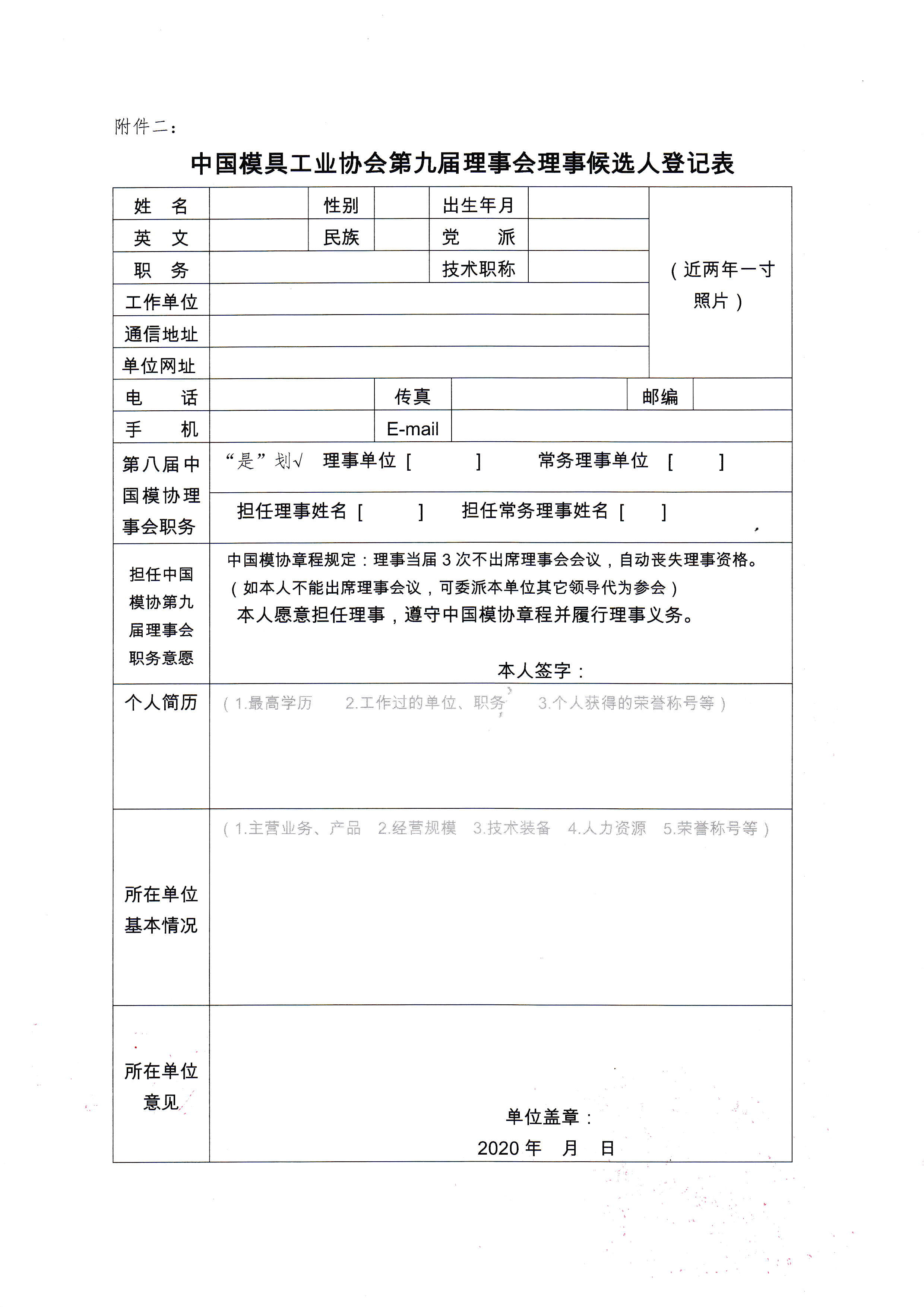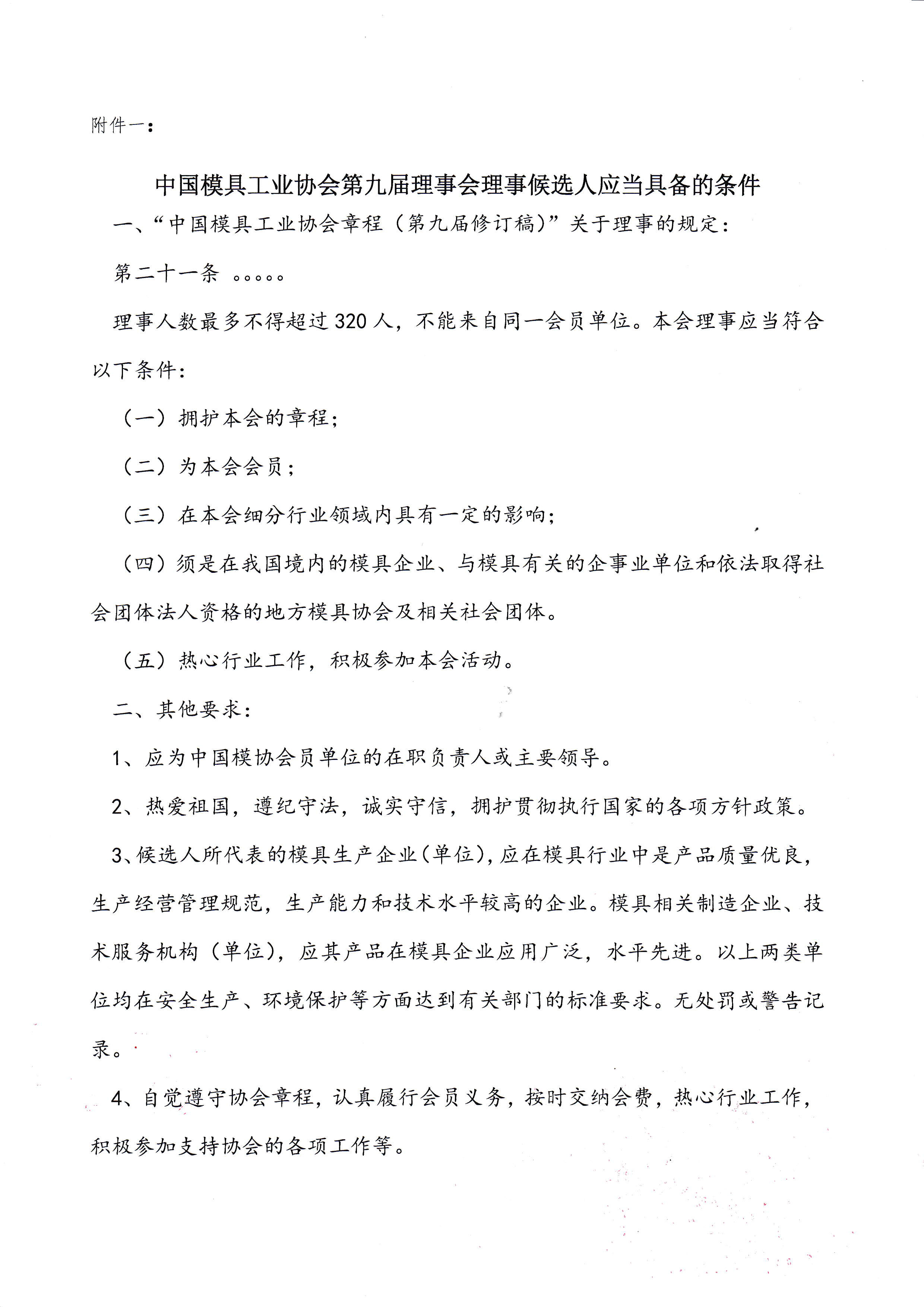 關于征集中國模具工業協會第九屆理事會理事候選人的通知