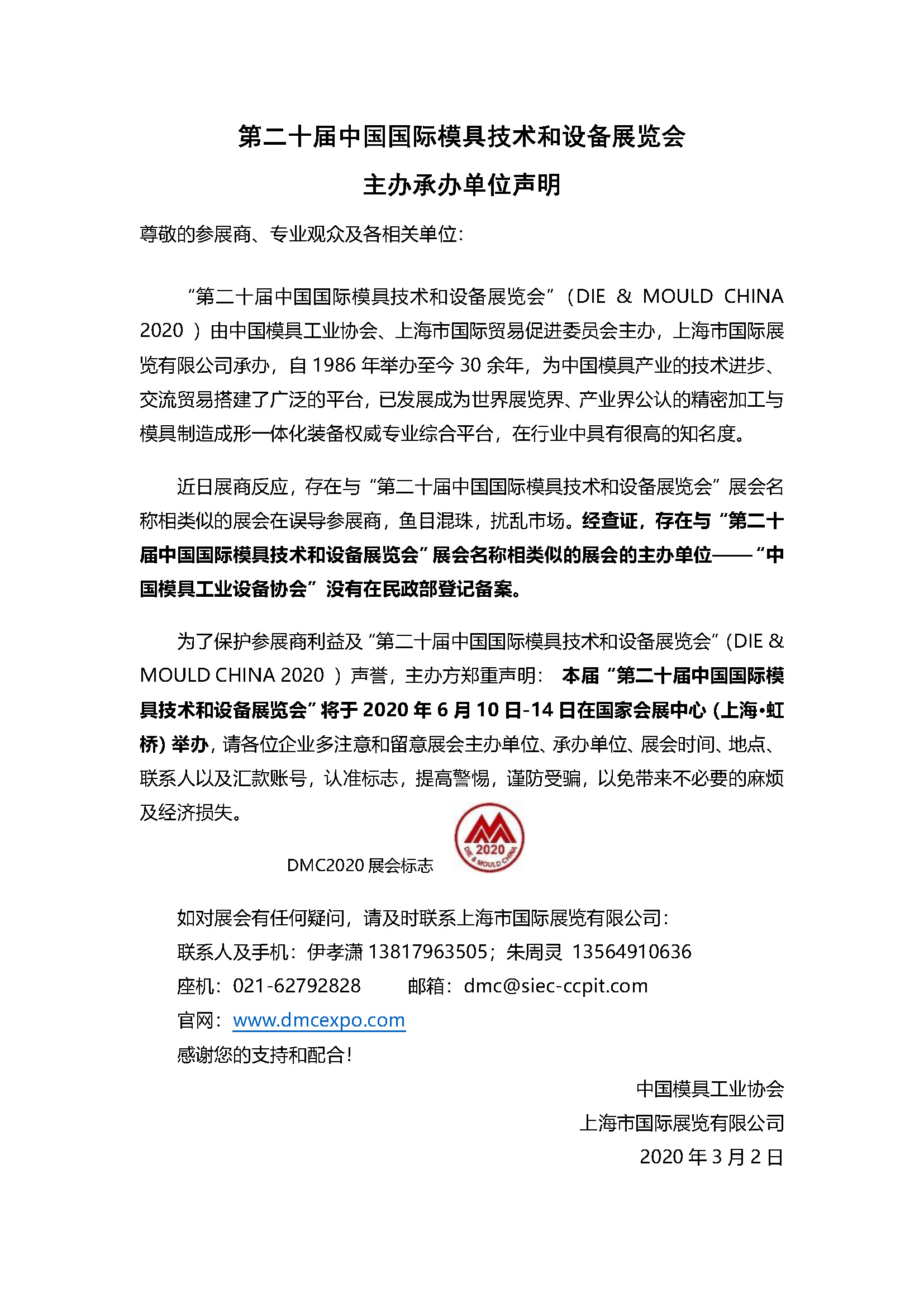 第二十屆中國(guó)國(guó)際模具技術(shù)和設(shè)備展覽會(huì)主辦承辦單位聲明