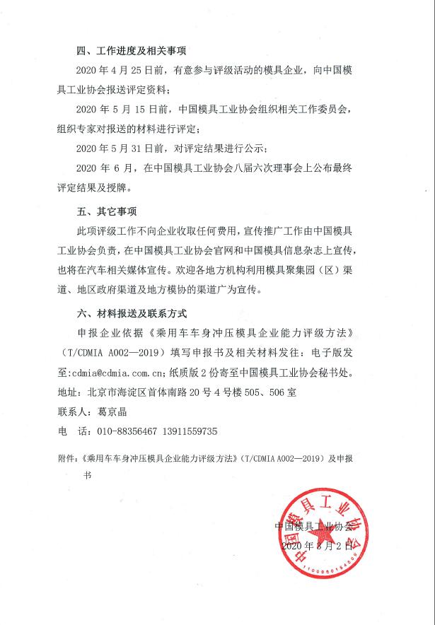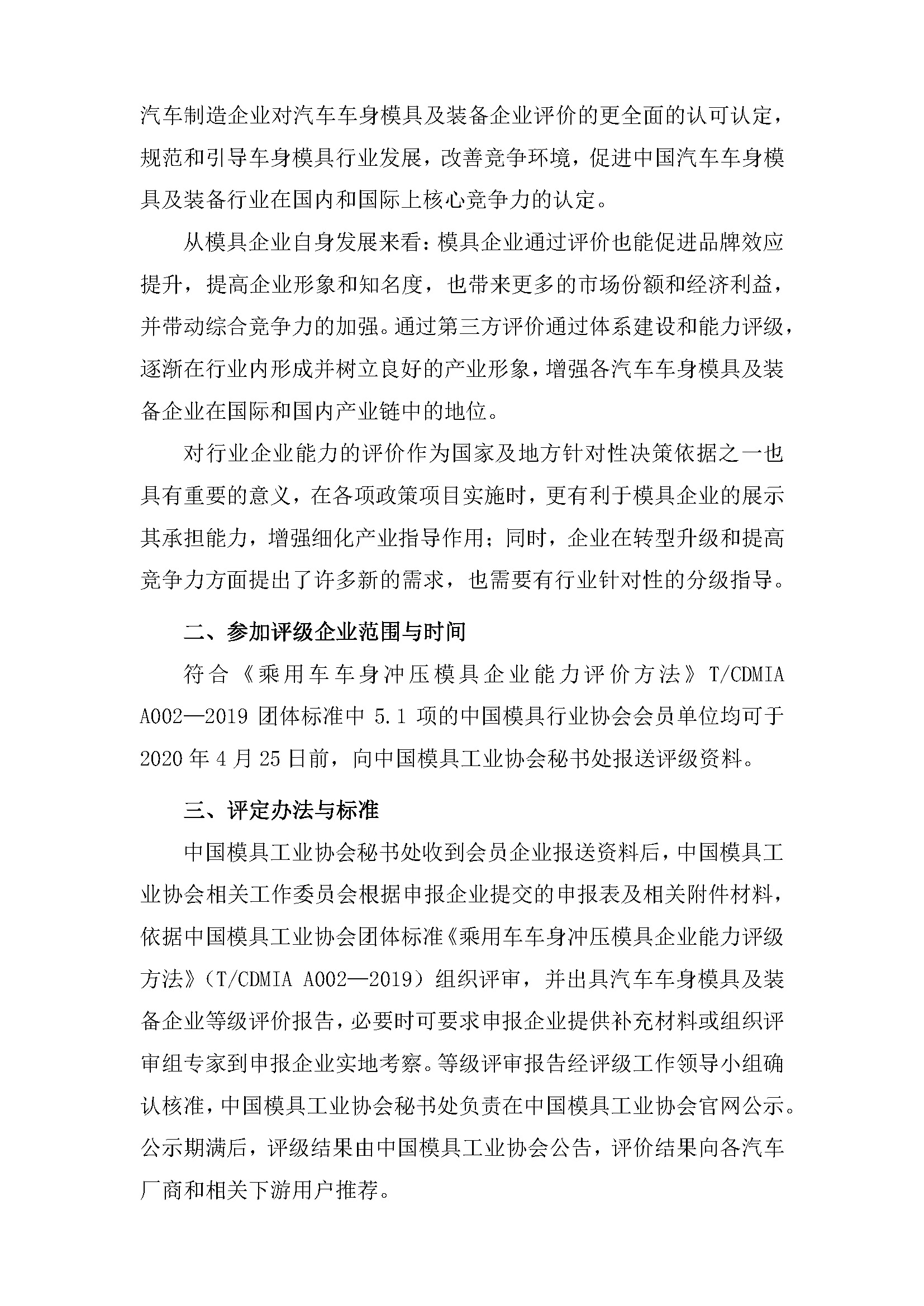 關(guān)于開展首批乘用車車身模具企業(yè)評級工作的通知