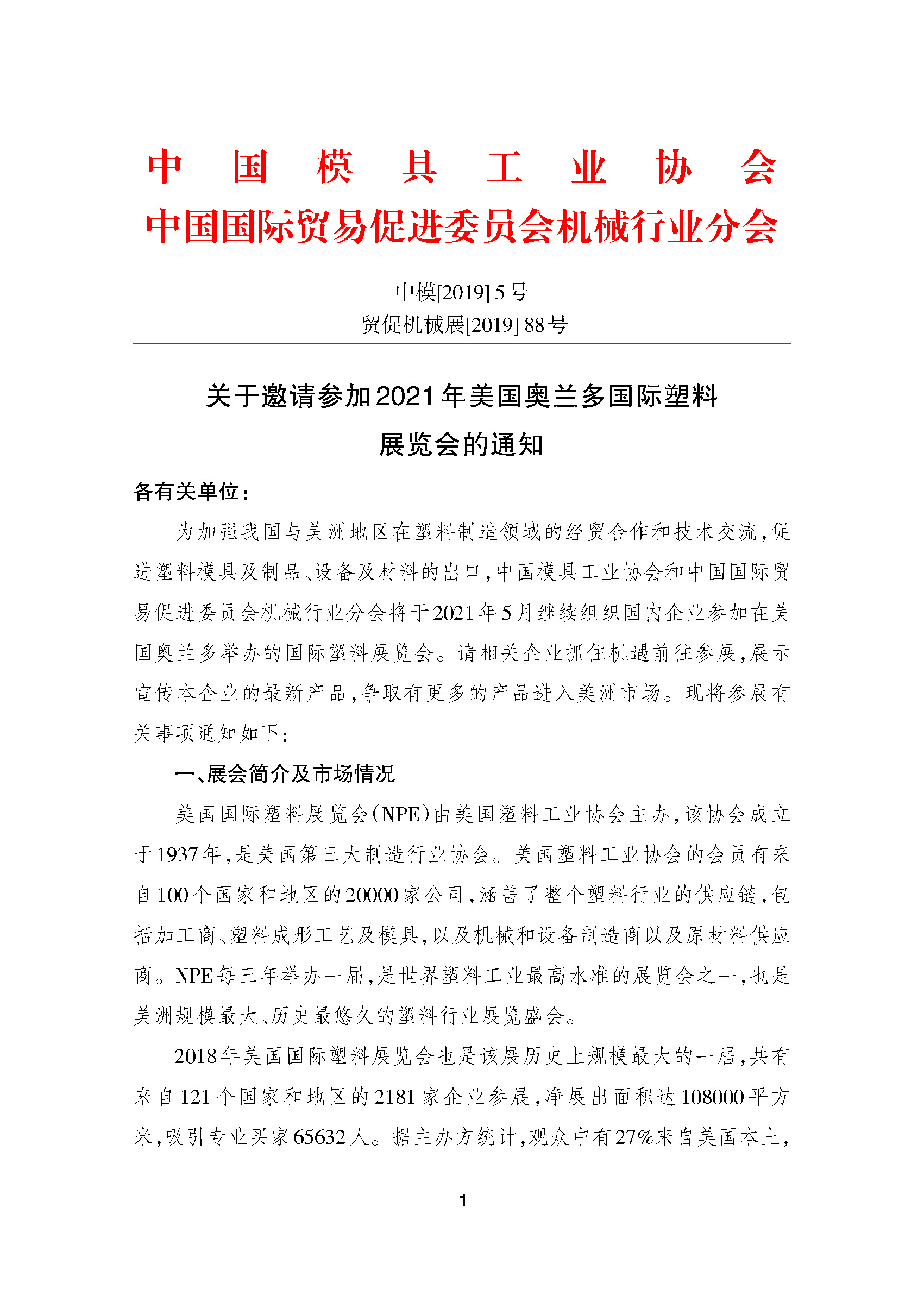 關(guān)于邀請(qǐng)參加2021年美國(guó)奧蘭多國(guó)際塑料展覽會(huì)的通知