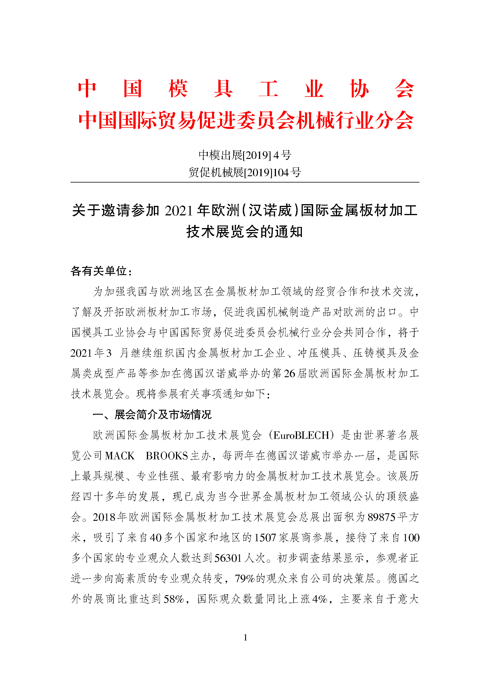 關(guān)于邀請(qǐng)參加2021年歐洲(漢諾威)國(guó)際金屬板材加工技術(shù)展覽會(huì)的通知