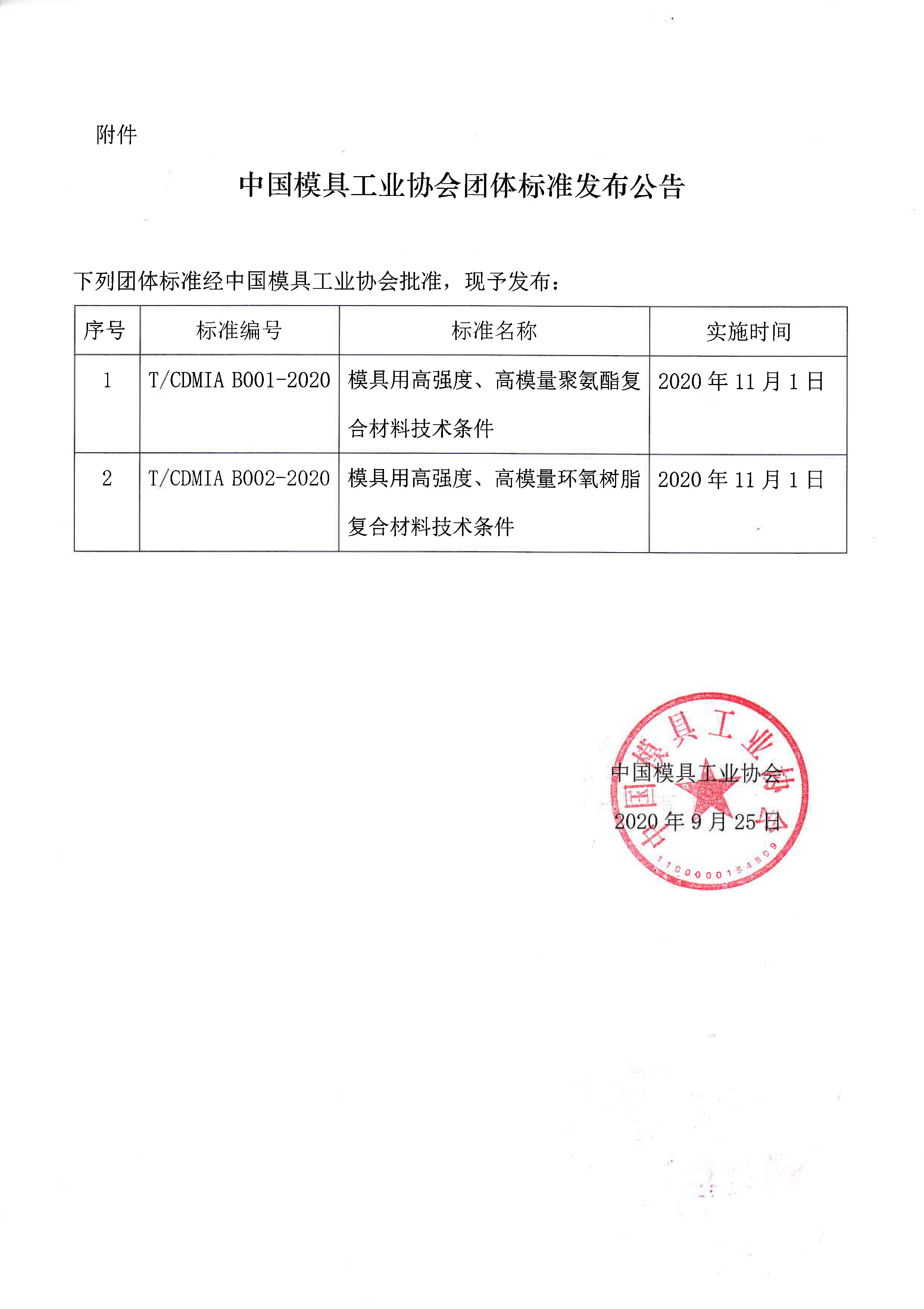 關(guān)于發(fā)布《模具用高強(qiáng)度、高模量聚氨酯復(fù)合材料技術(shù)條件》等兩項(xiàng)團(tuán)體標(biāo)準(zhǔn)公告的通知