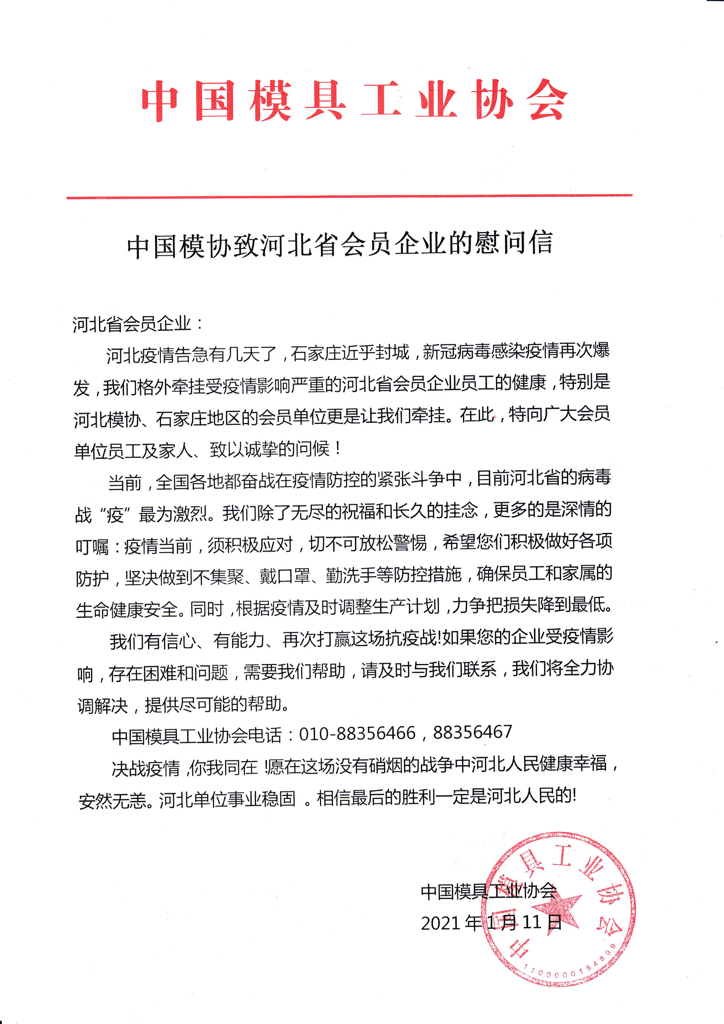 中國模協(xié)致河北省會員企業(yè)的慰問信
