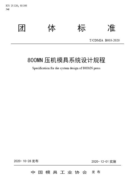 中國模協標準B003-800MN壓機模具系統設計規程-2020
