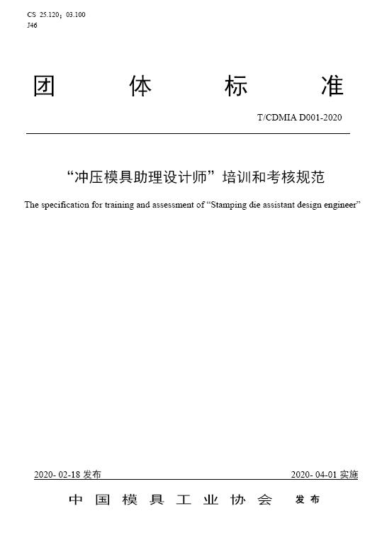 中國模協(xié)標準D001-沖壓模具助理設計師培訓和考核規(guī)范-2020