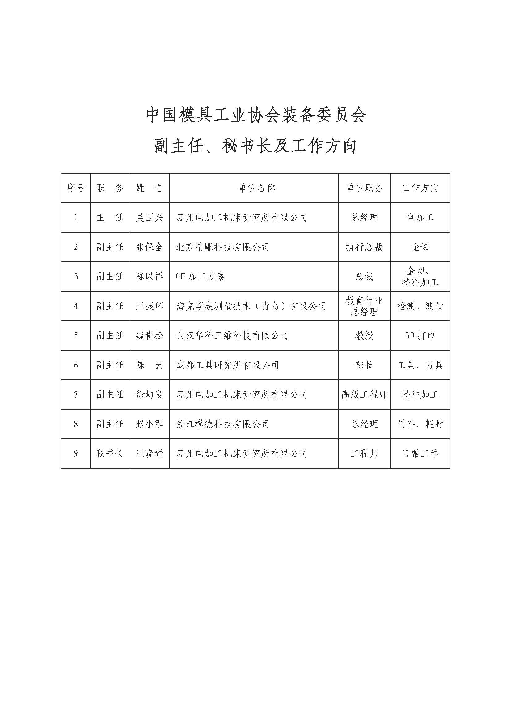 中國模協第九屆理事會裝備委員會副主任、秘書長組成及工作架構的批復