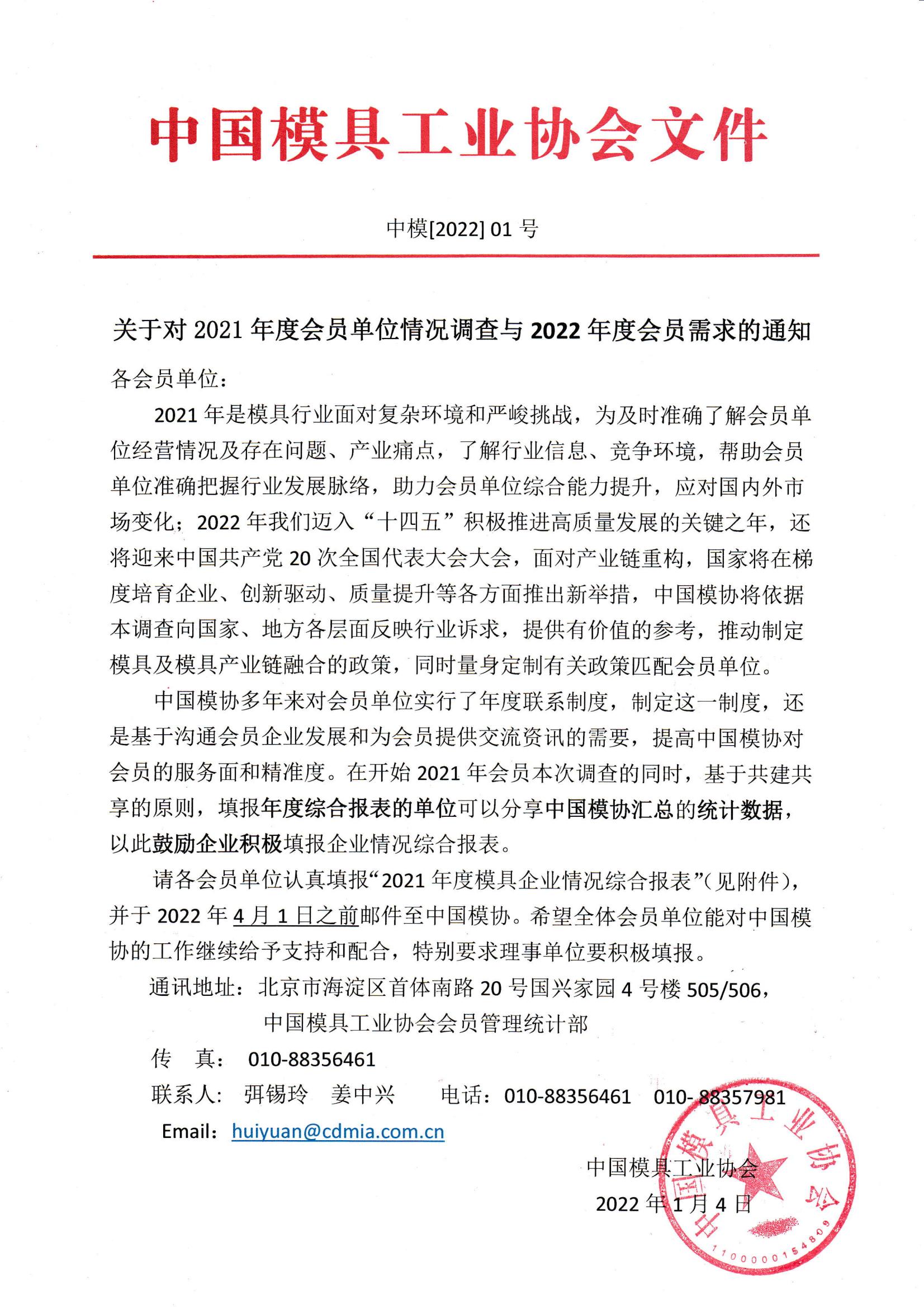關(guān)于對(duì)2021年度會(huì)員單位情況調(diào)查與2022年度會(huì)員需求的通知