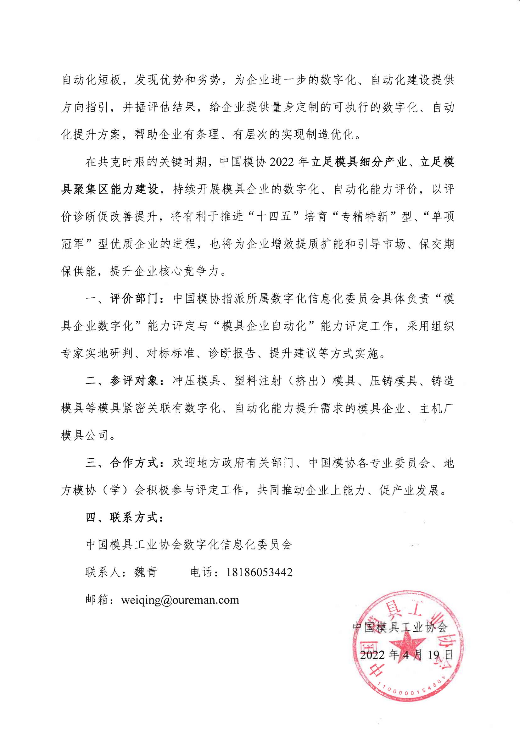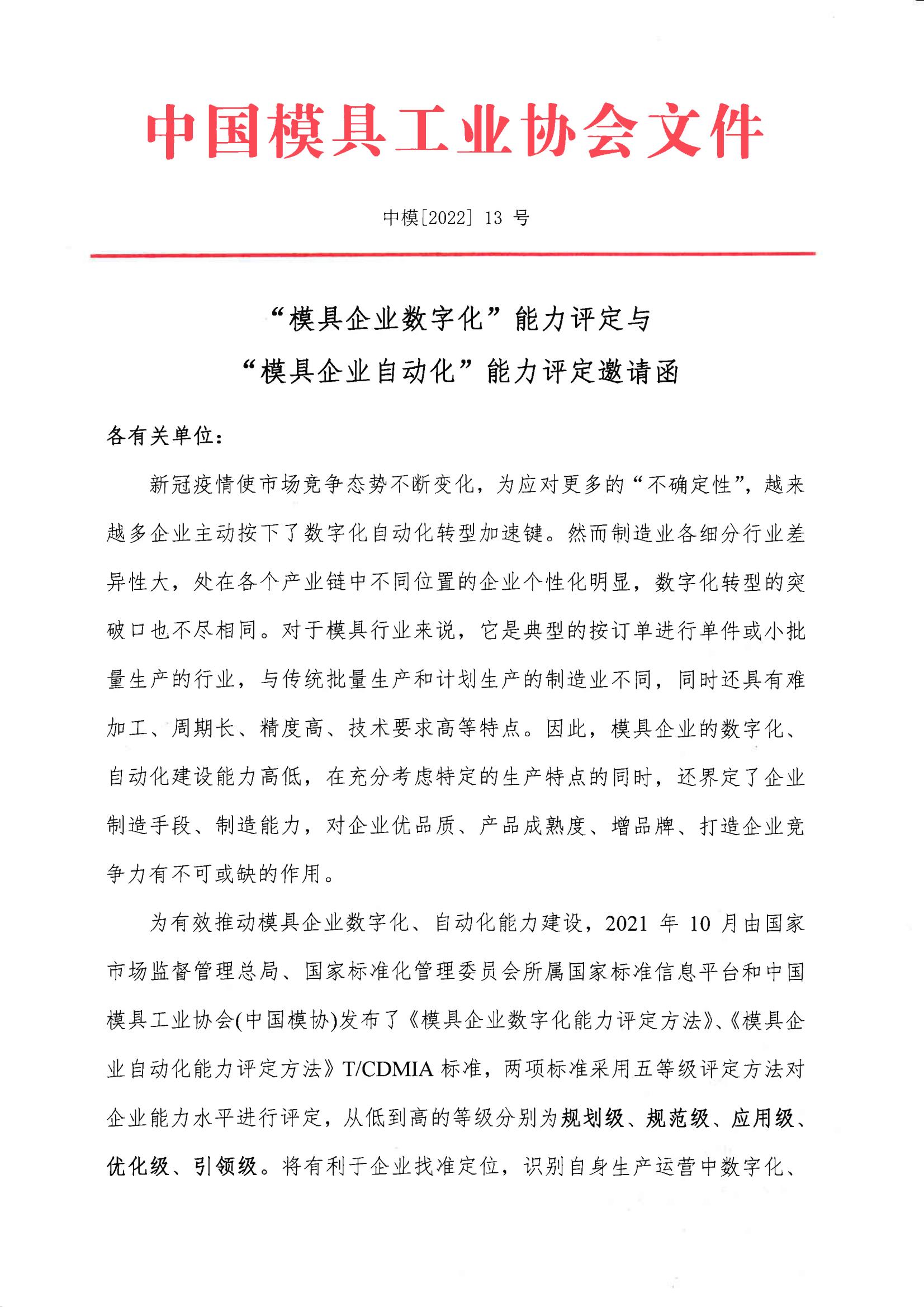 “模具企業(yè)數(shù)字化”能力評(píng)定與“模具企業(yè)自動(dòng)化”能力評(píng)定邀請(qǐng)函