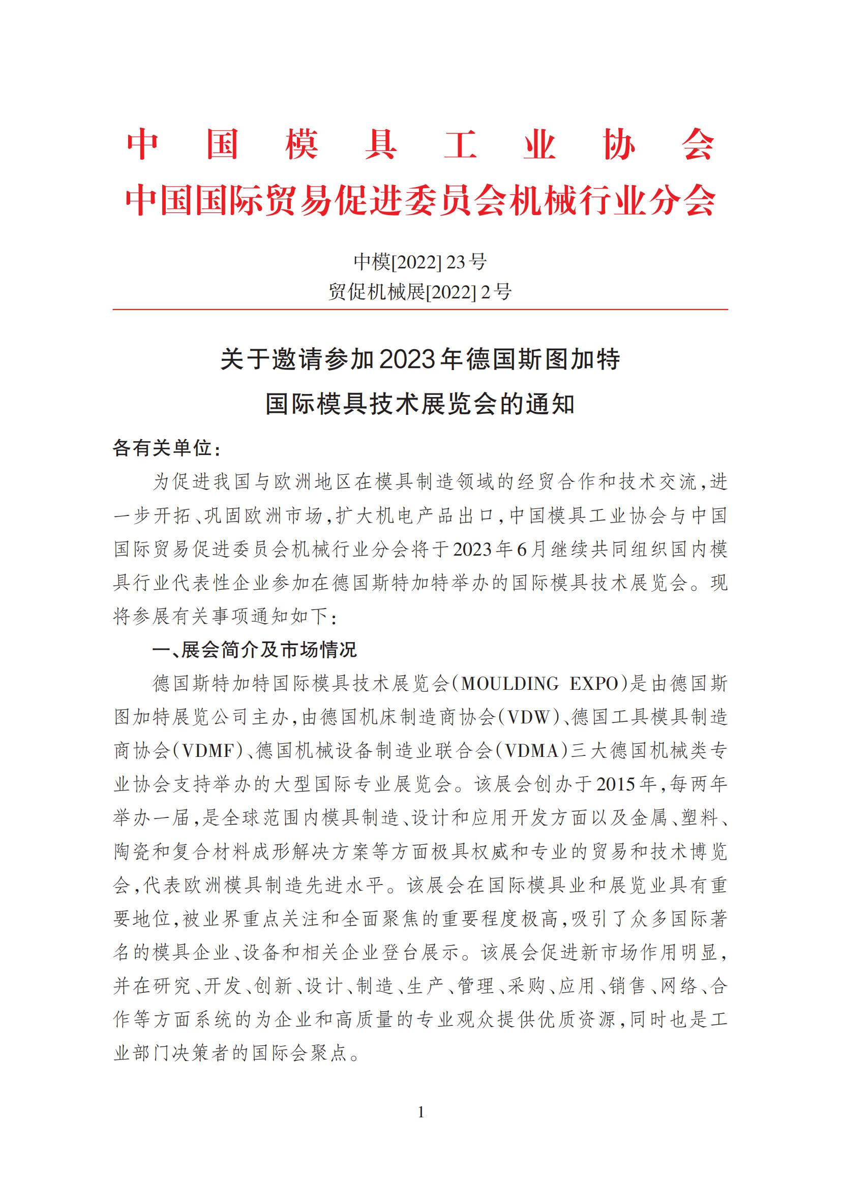 關(guān)于邀請參加2023年德國斯圖加特國際模具技術(shù)展覽會的通知