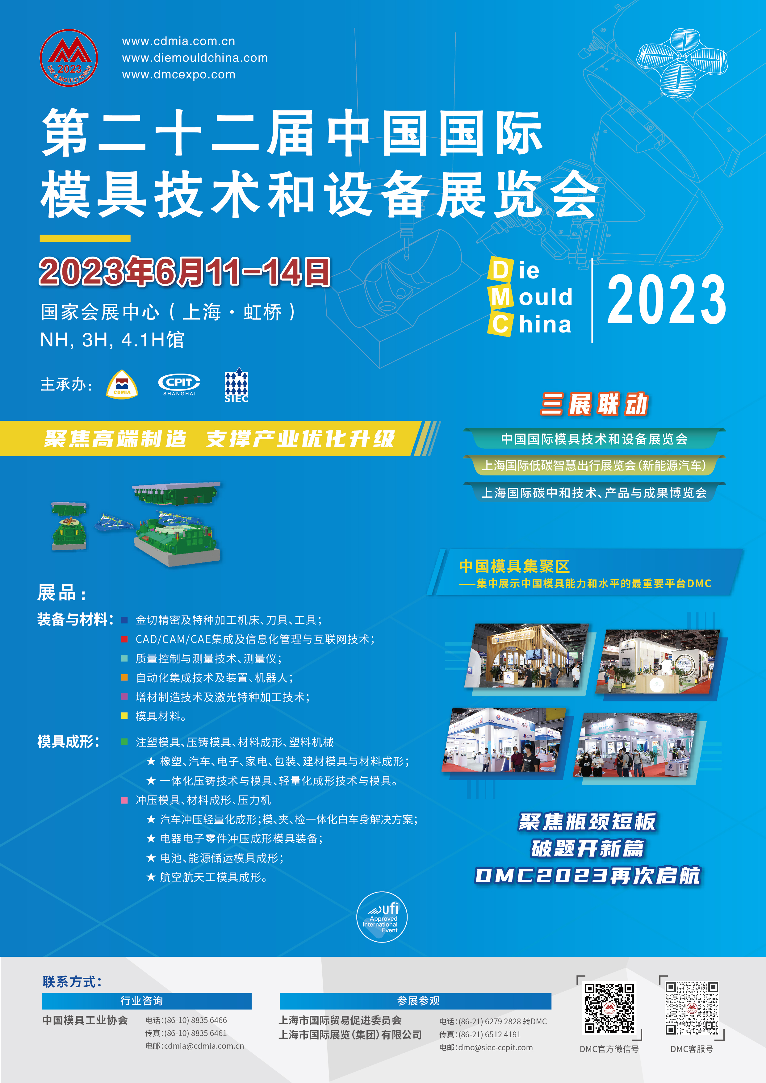 第二十二屆中國國際模具技術和設備展覽會將于2023年6月11-14日舉辦