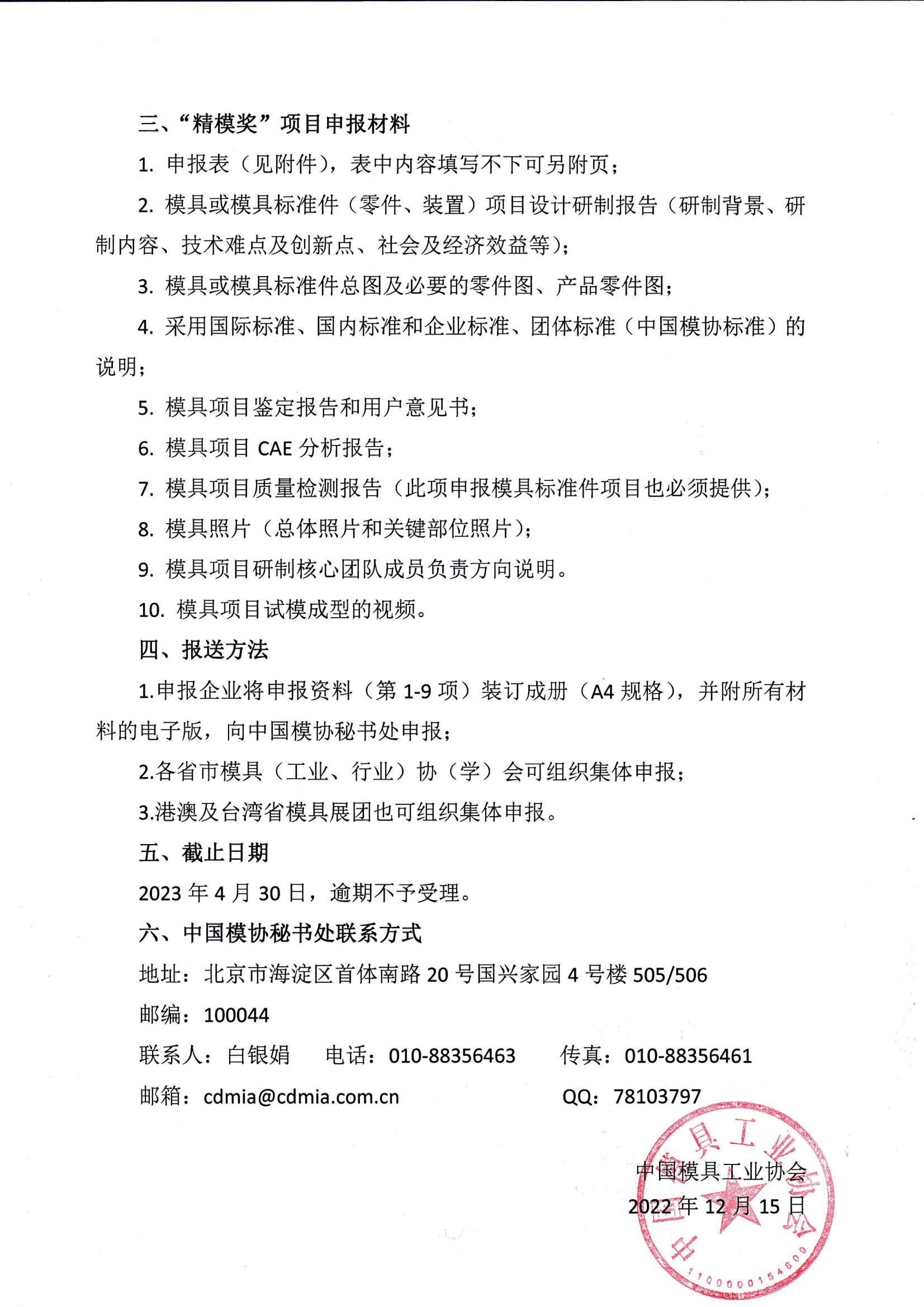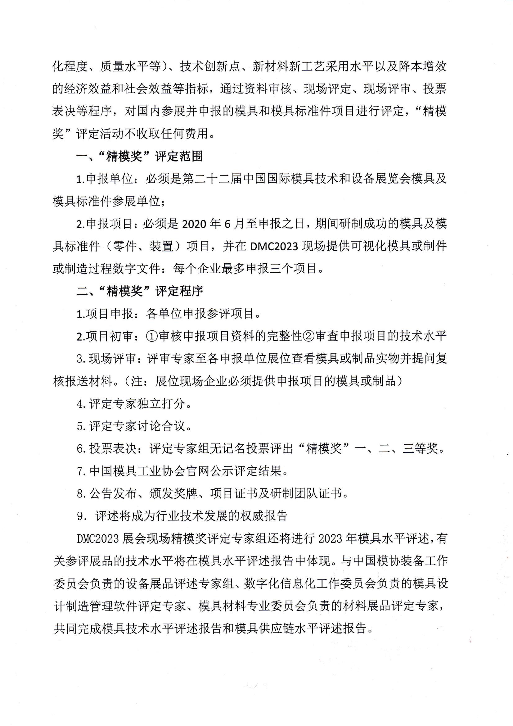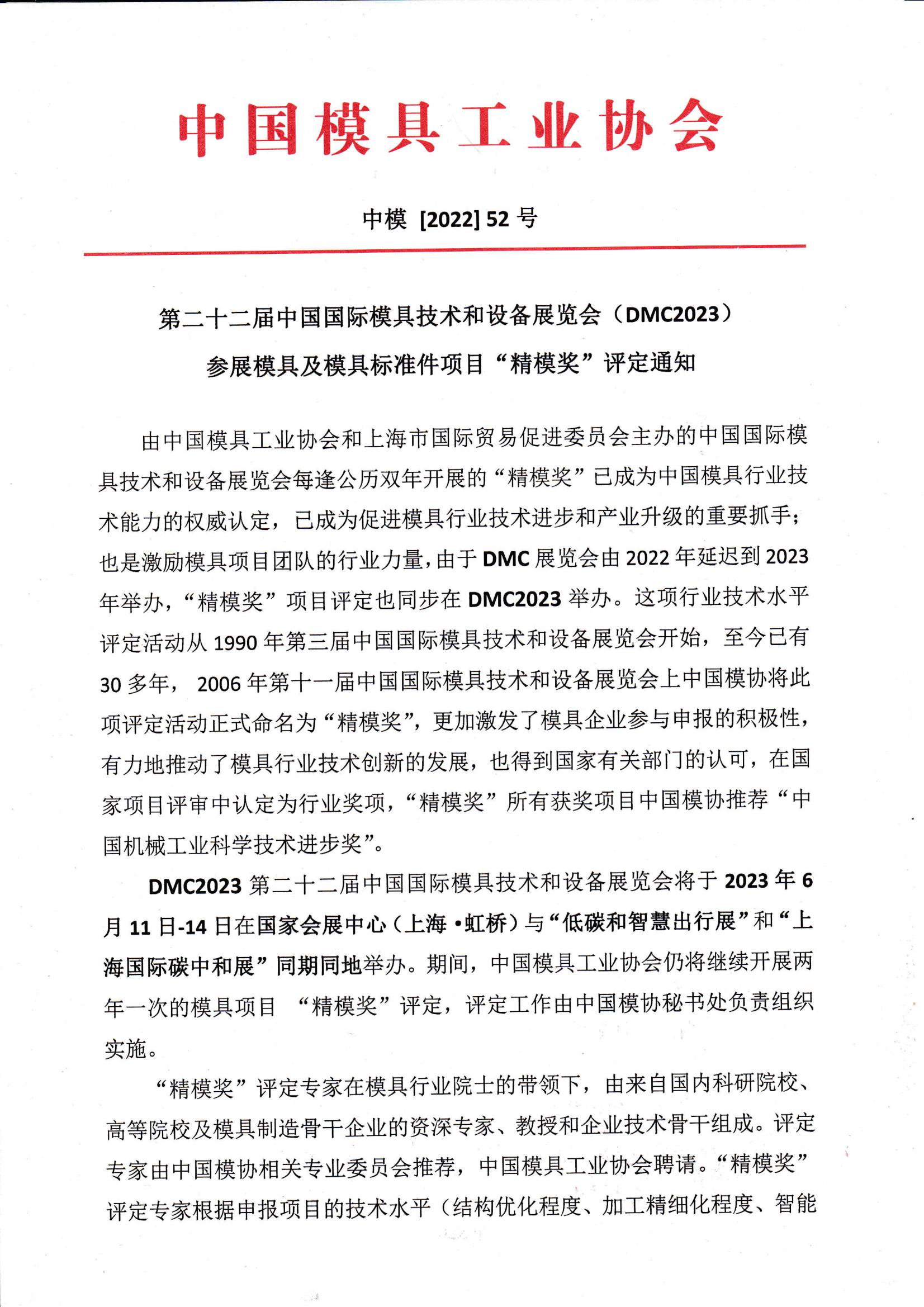 第二十二屆中國國際模具技術和設備展覽會(DMC2023) 參展模具及模具標準件項目“精模獎”評定通知