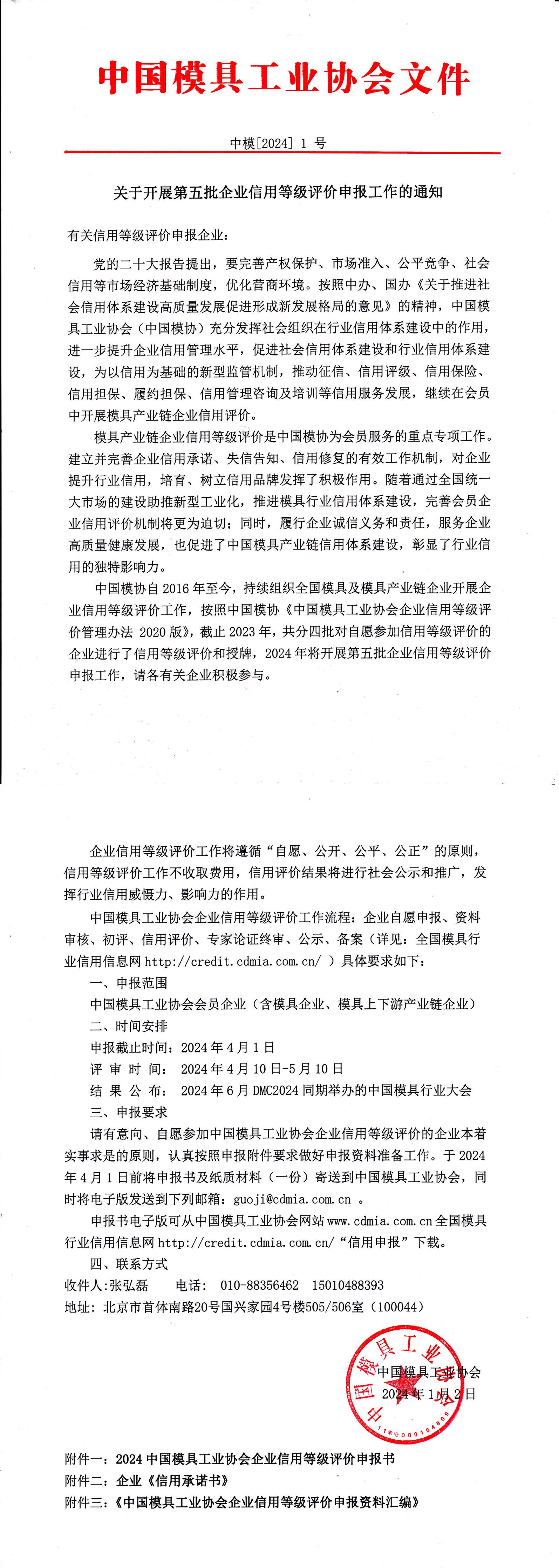關于開展第五批企業信用等級評價申報工作的通知