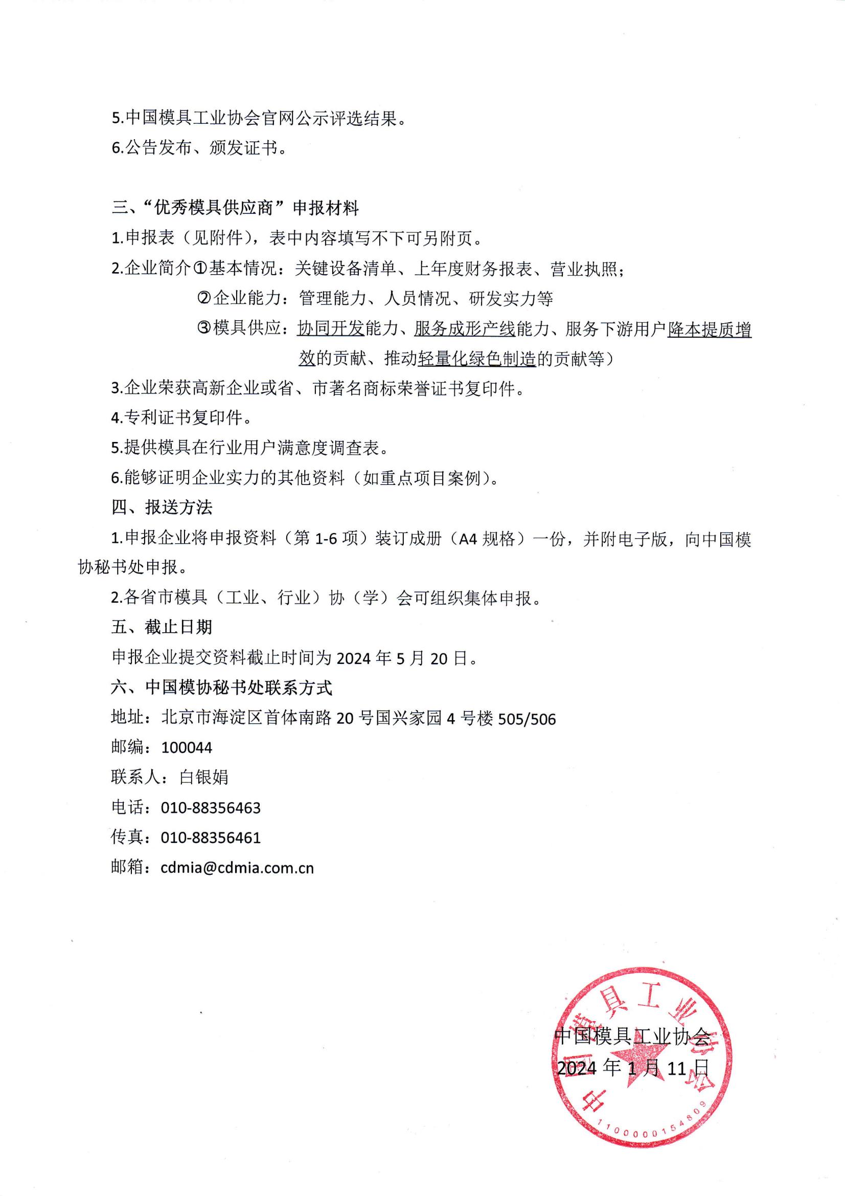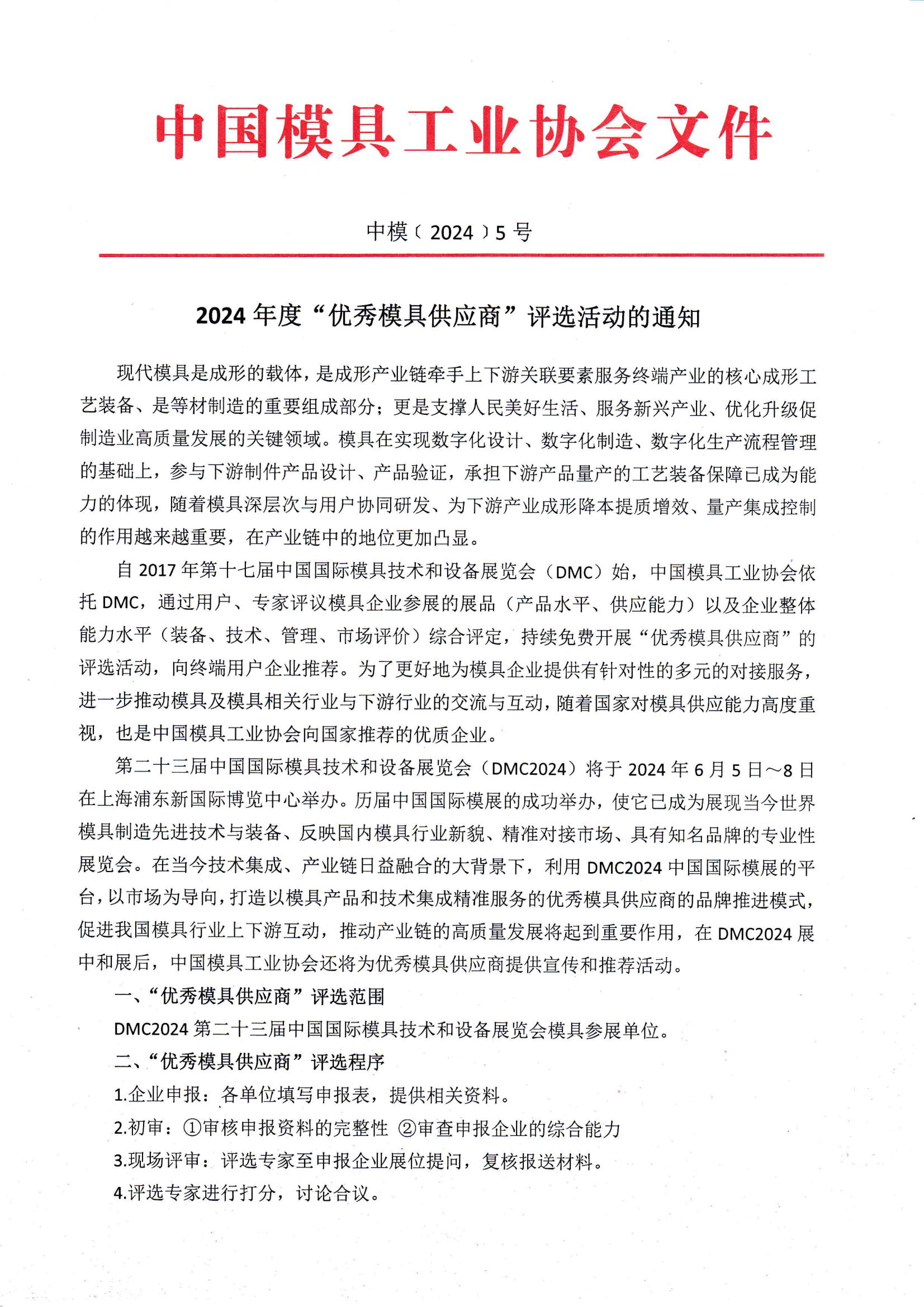 2024年度“優(yōu)秀模具供應商”評選活動的通知