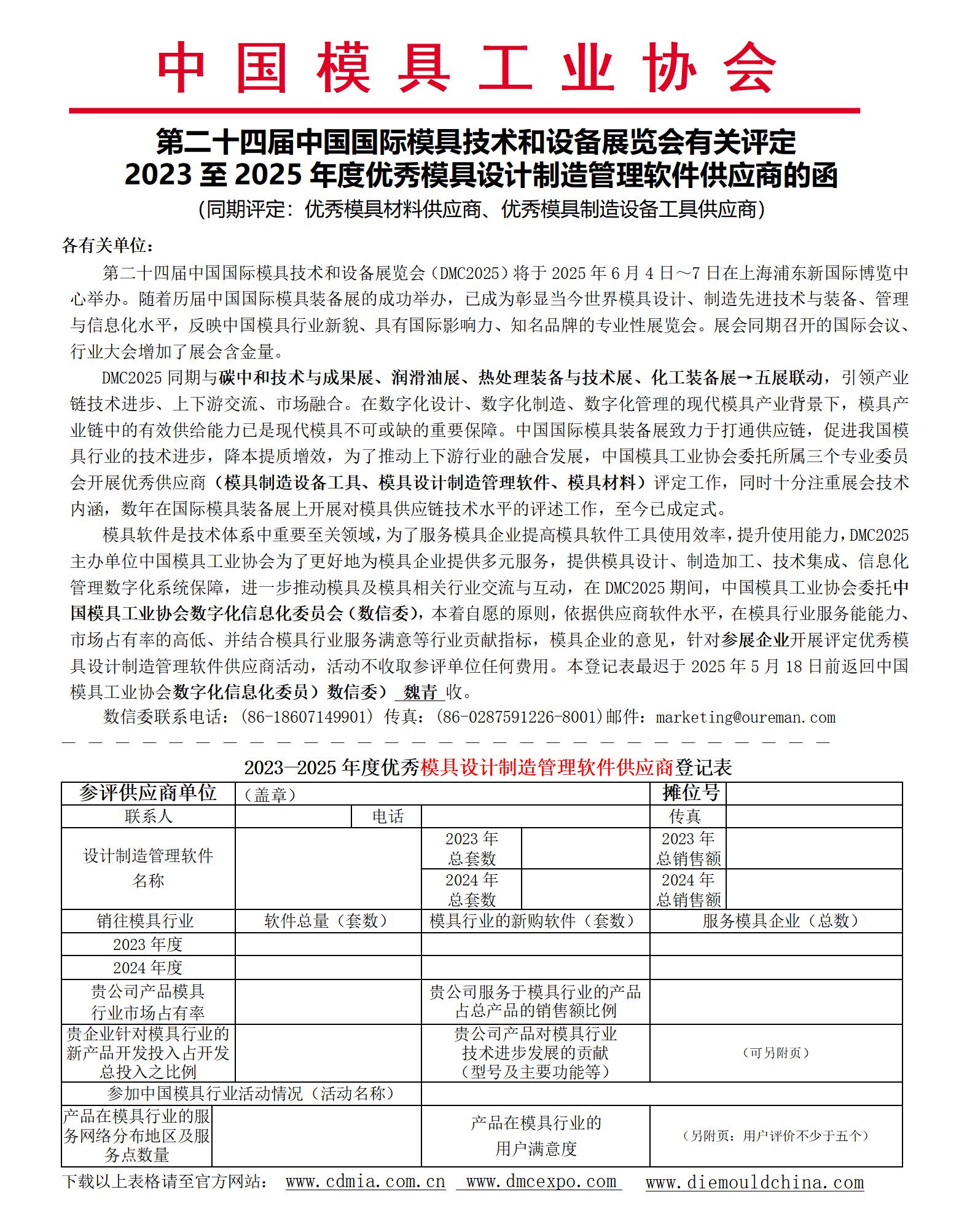 2023至 2025年度優(yōu)秀模具設(shè)計(jì)制造管理軟件供應(yīng)商的函