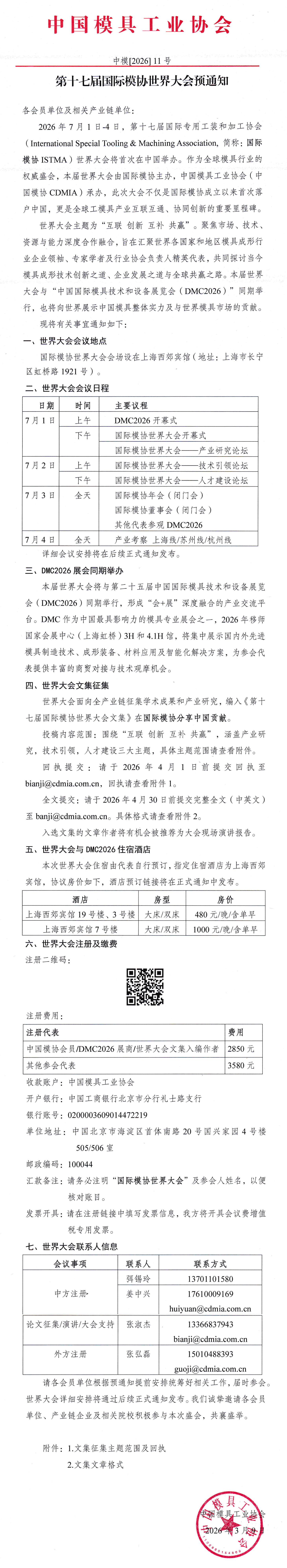 第十七屆國際模協(xié)世界大會預通知